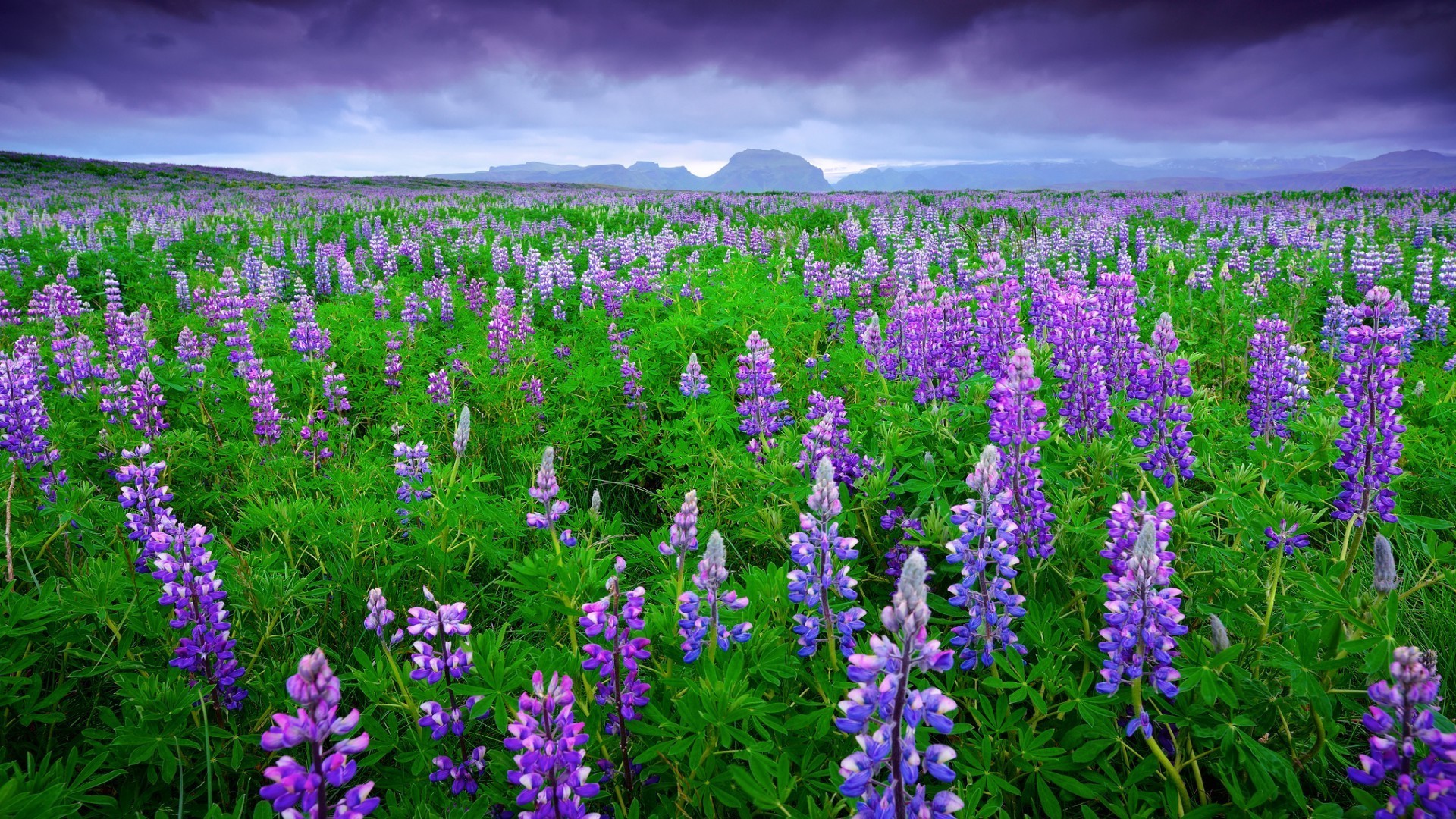 Schöne Lupinen Blumenfeld