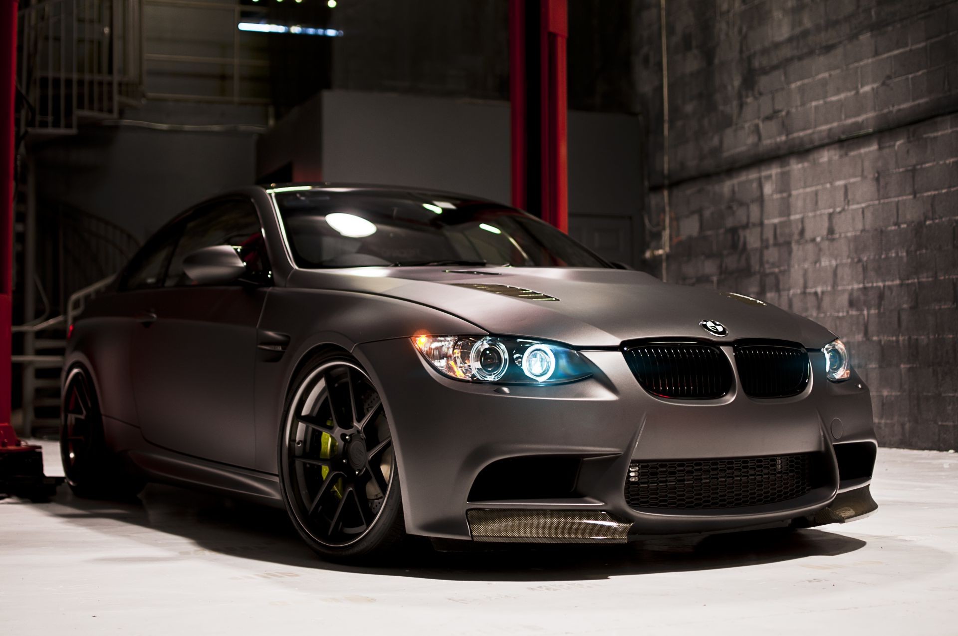 BMW m5 mit brennenden Scheinwerfern kommt in die Kurve