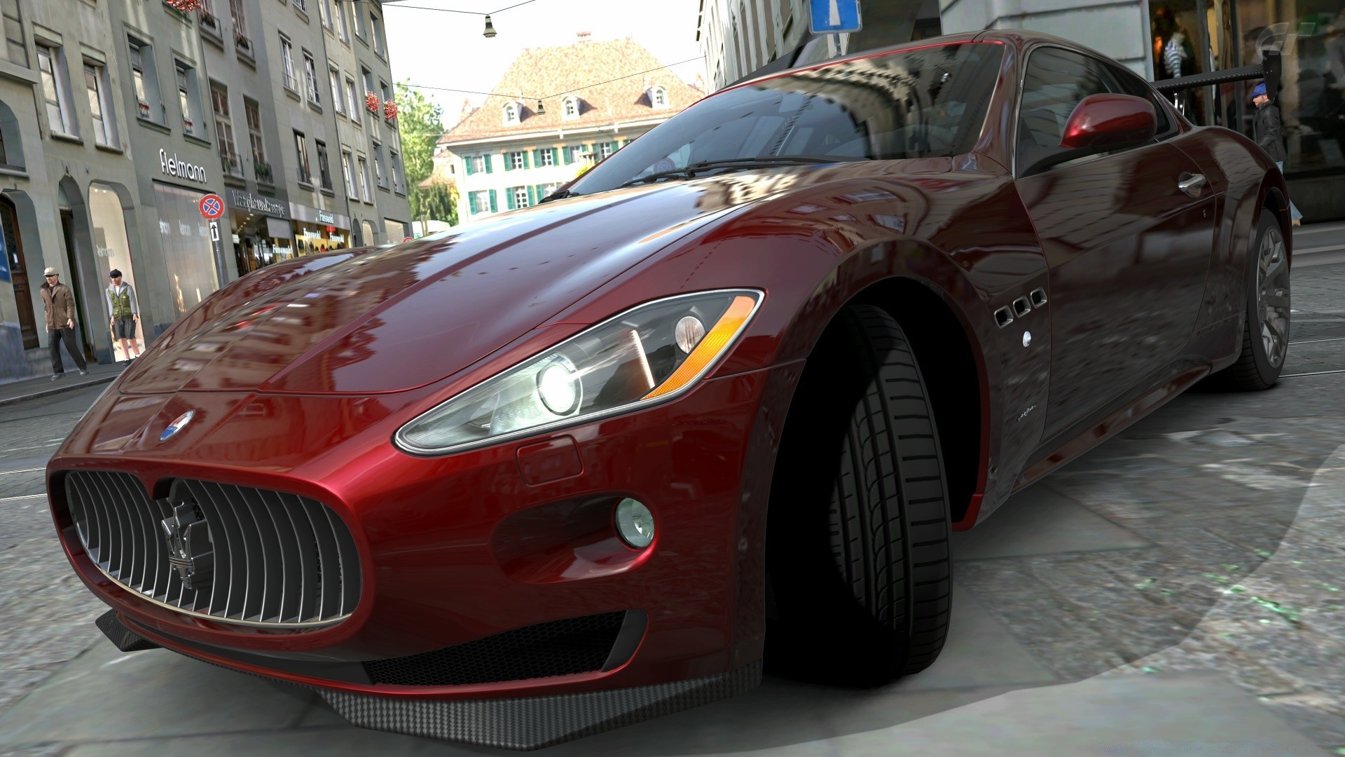 Burgunder Sportwagen in der Stadt