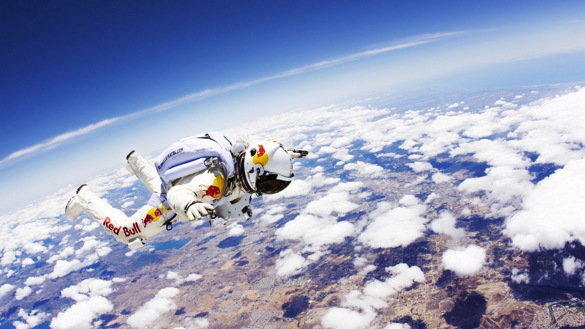 Kreis der Fallschirmspringer auf dem Hintergrund der Erde