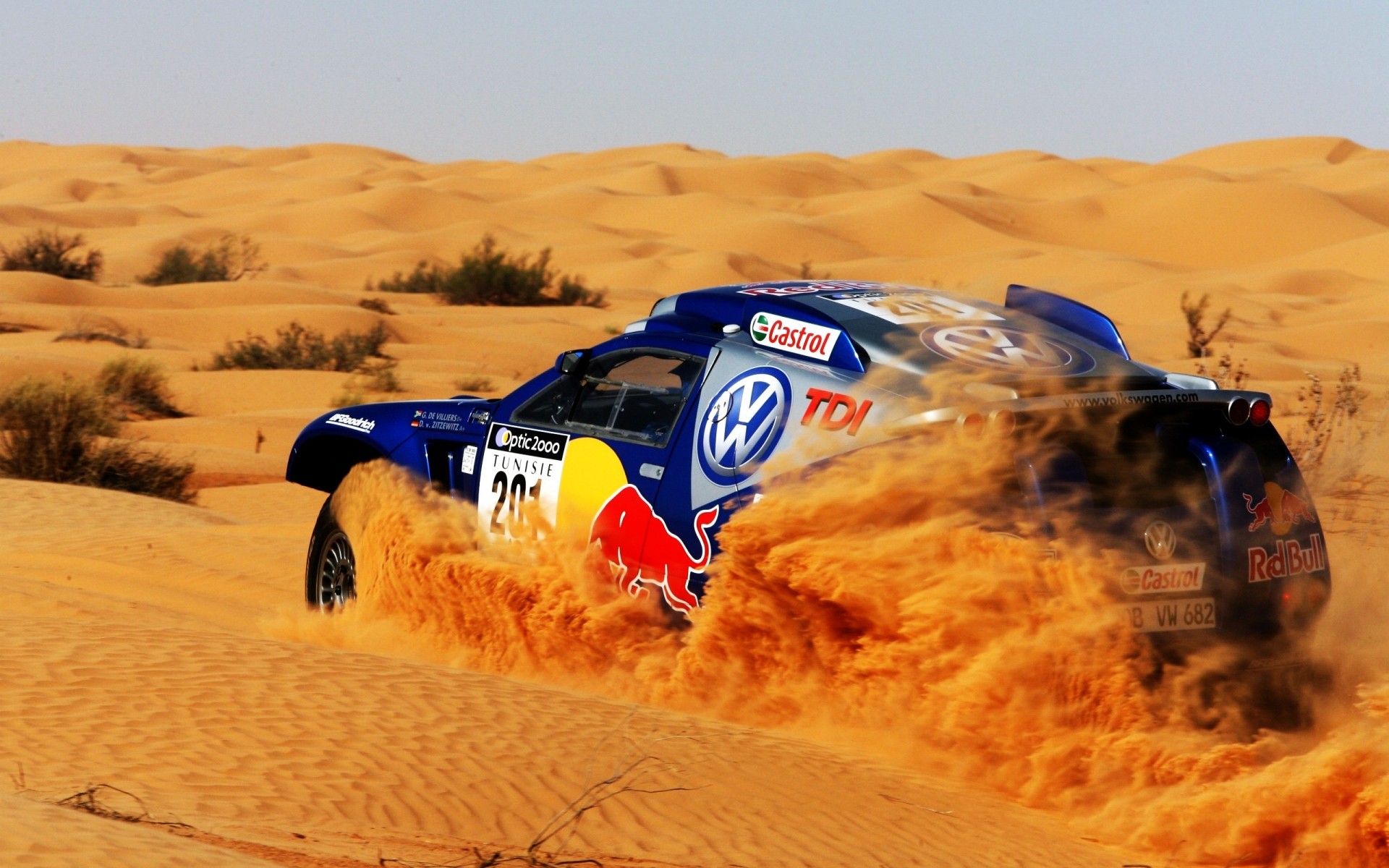 Rennen in der Wüste mit einem Pkw am Nachmittag