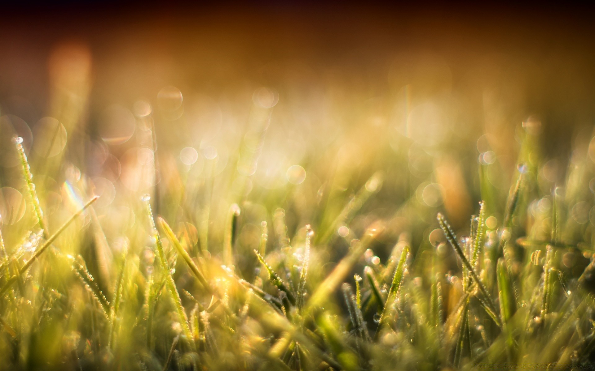 Die sonne spiegelt sich in den tautropfen auf dem gras widerDie Sonne spiegelt sich in den Tautropfen auf dem Gras wider
