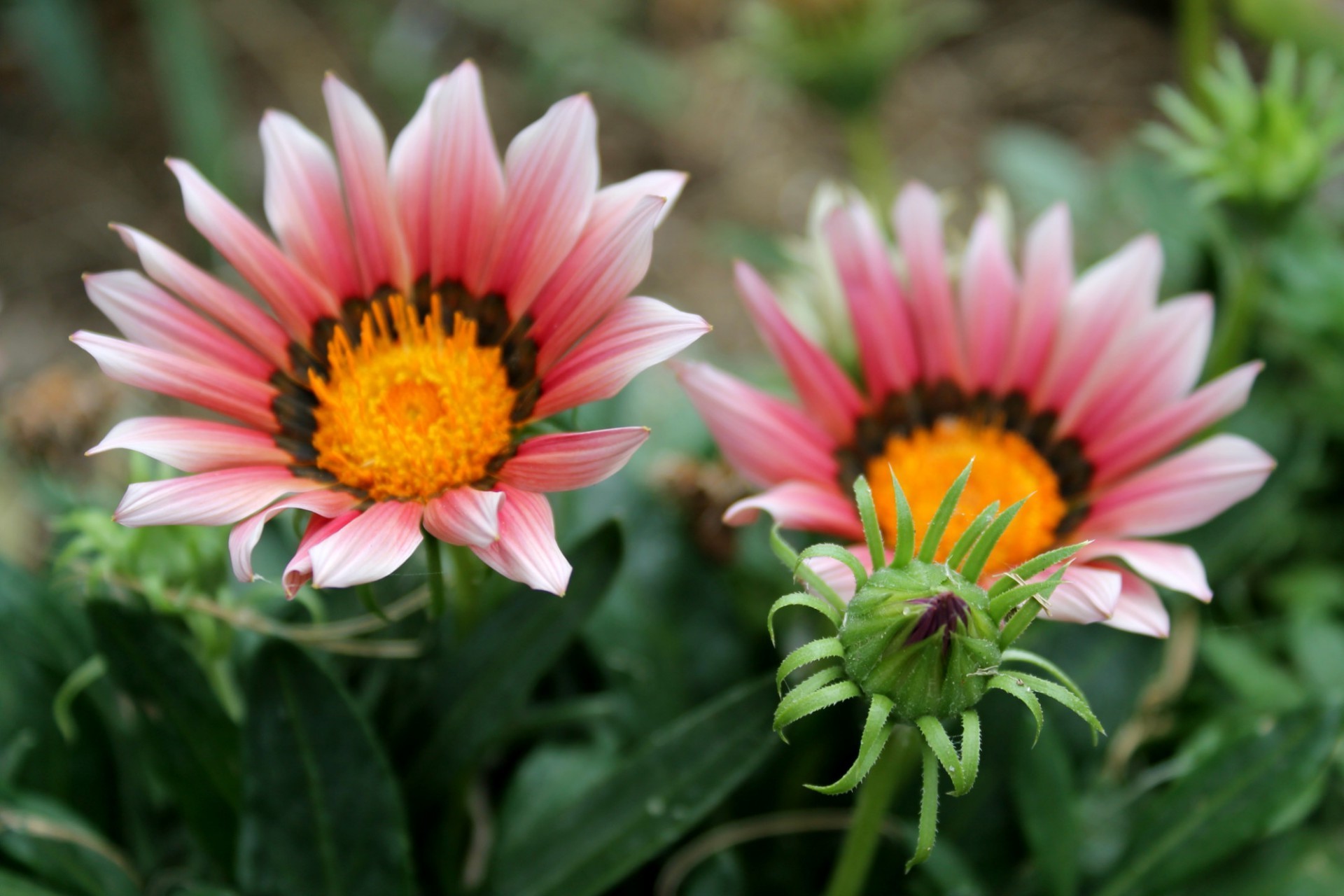Gelb-blaue Blume in Tropfen auf schwarzem Hintergrund
