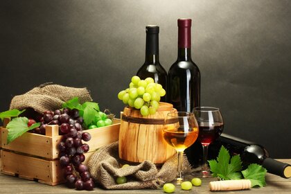Trauben und daraus produzierter Wein