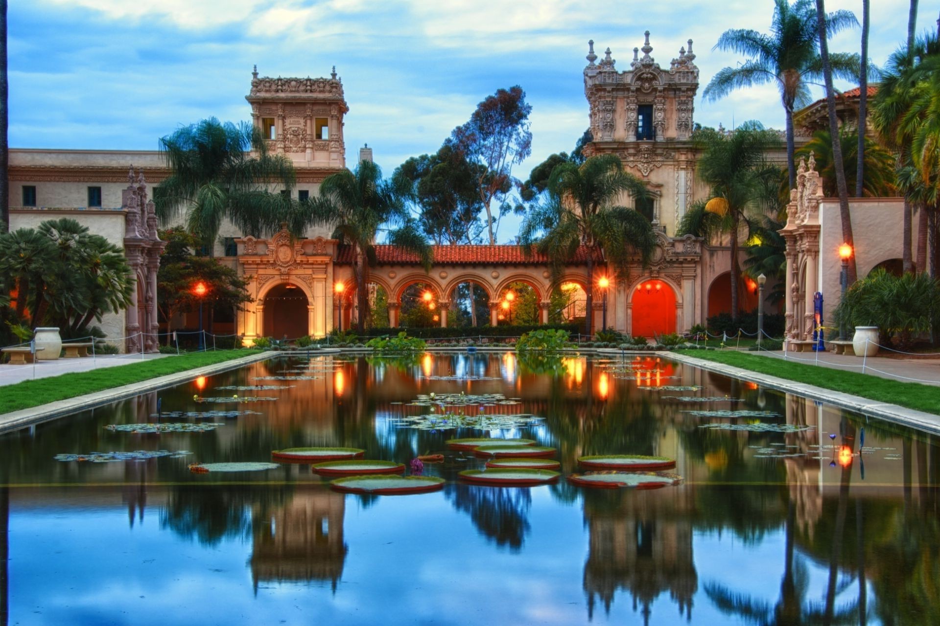 Ein reichhaltiges Schwimmbad neben schönen architektonischen Strukturen