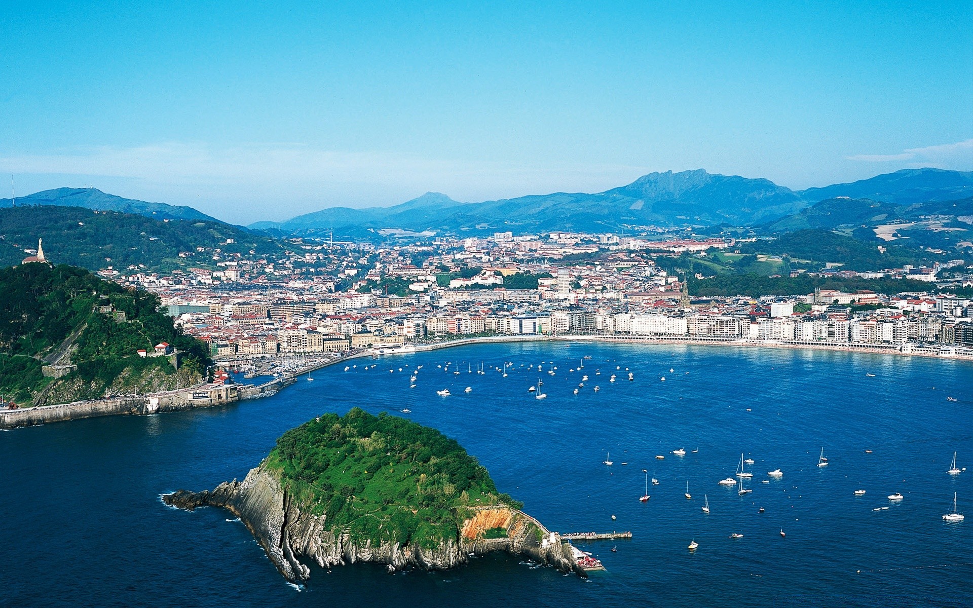Meeresbrandung am Fuße der Klippen mit der Stadt
