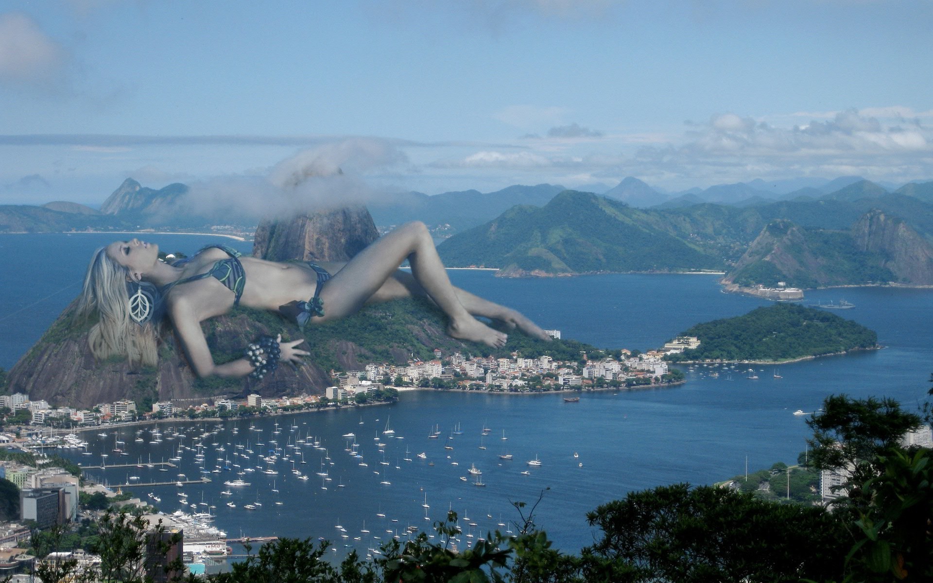 Ein mädchen, das im badeanzug liegt, liegt auf einer kleinen insel in sinemmoreEin Mädchen, das im Badeanzug liegt, liegt auf einer kleinen Insel in Sinemmore
