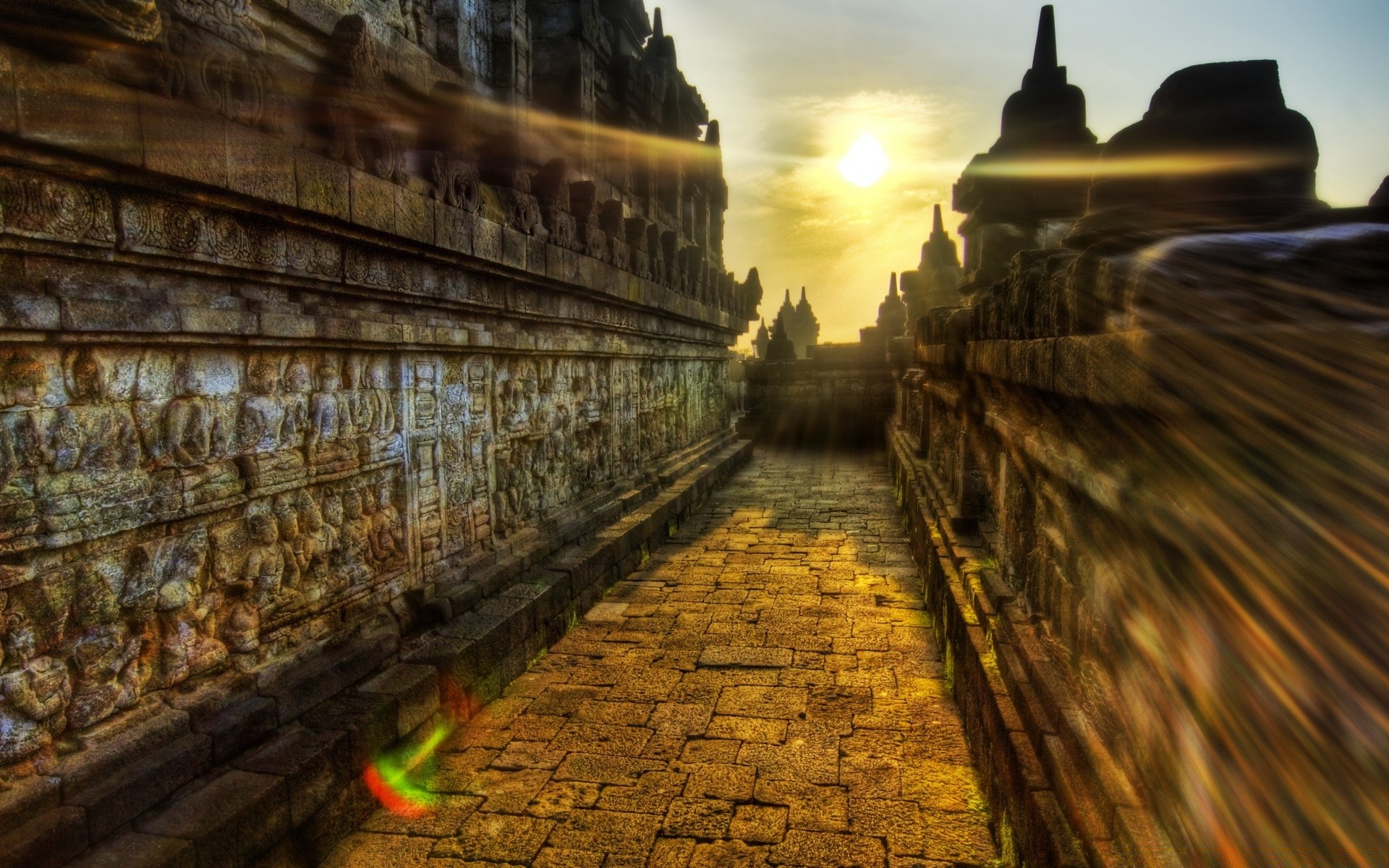 Ein alter Tempel in Peru bei Sonnenuntergang