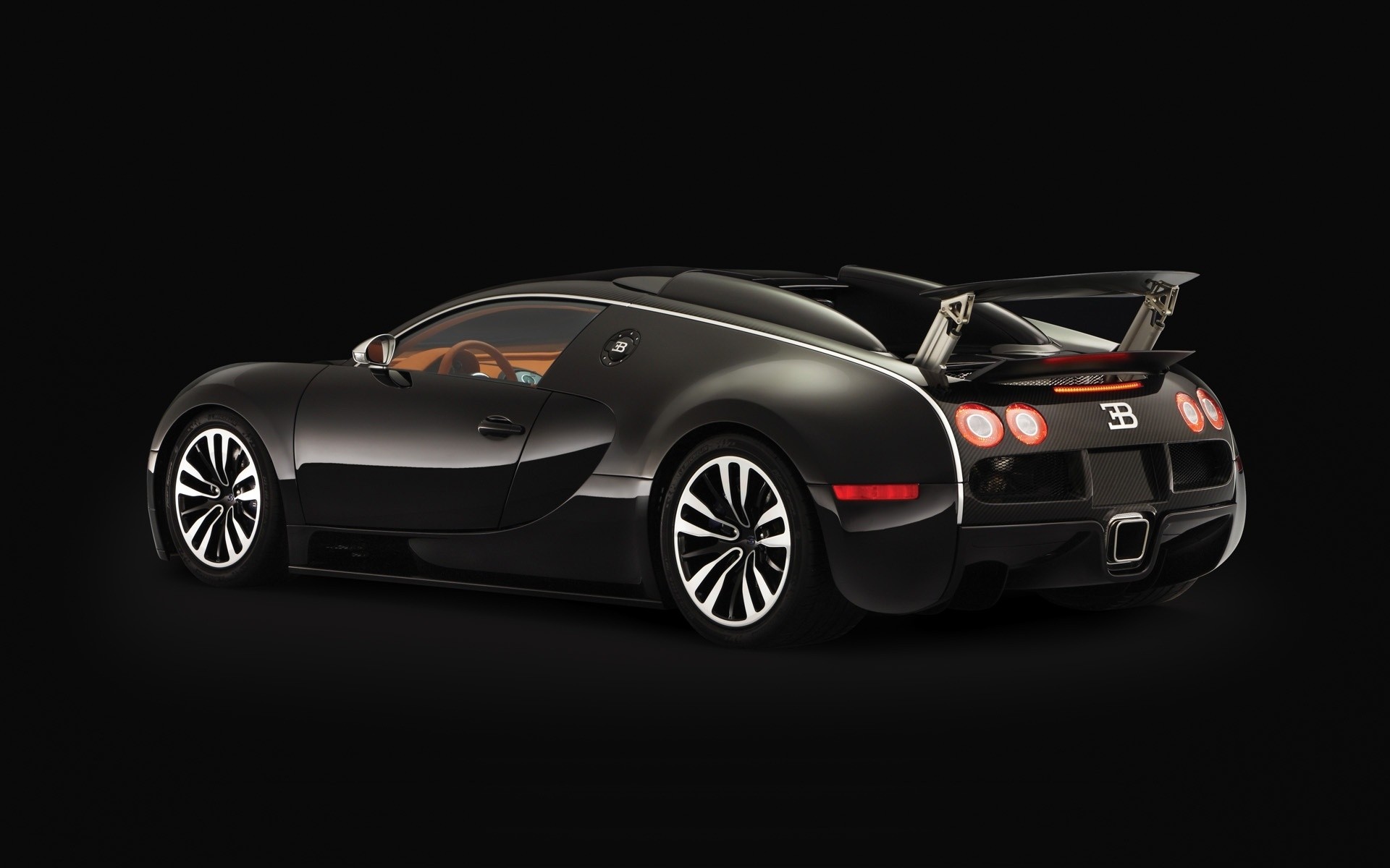 Glänzender schwarzer Bugatti mit orangefarbenem Innenraum