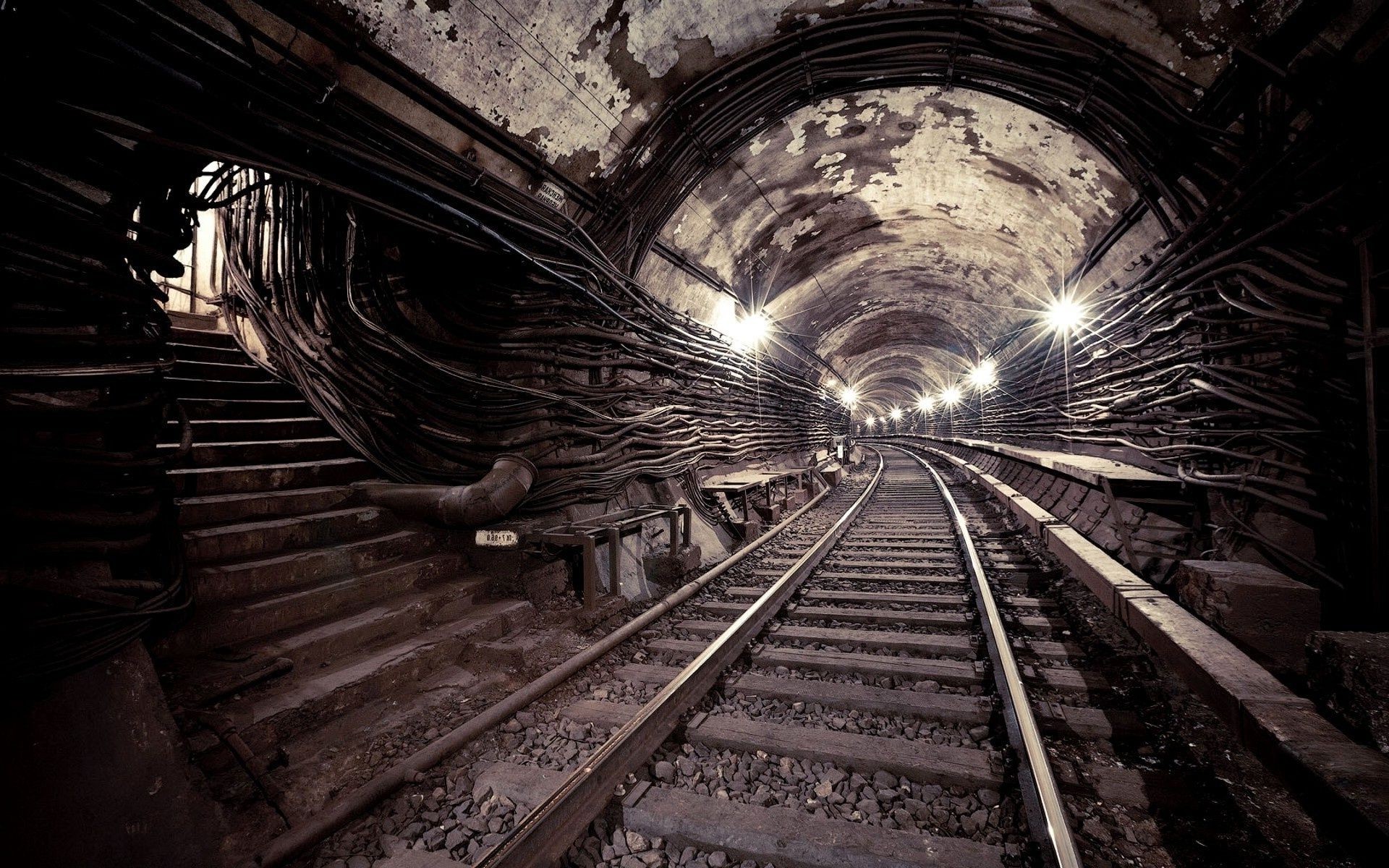 Schwarz-Weiß-Foto von U-Bahn-Tunnel