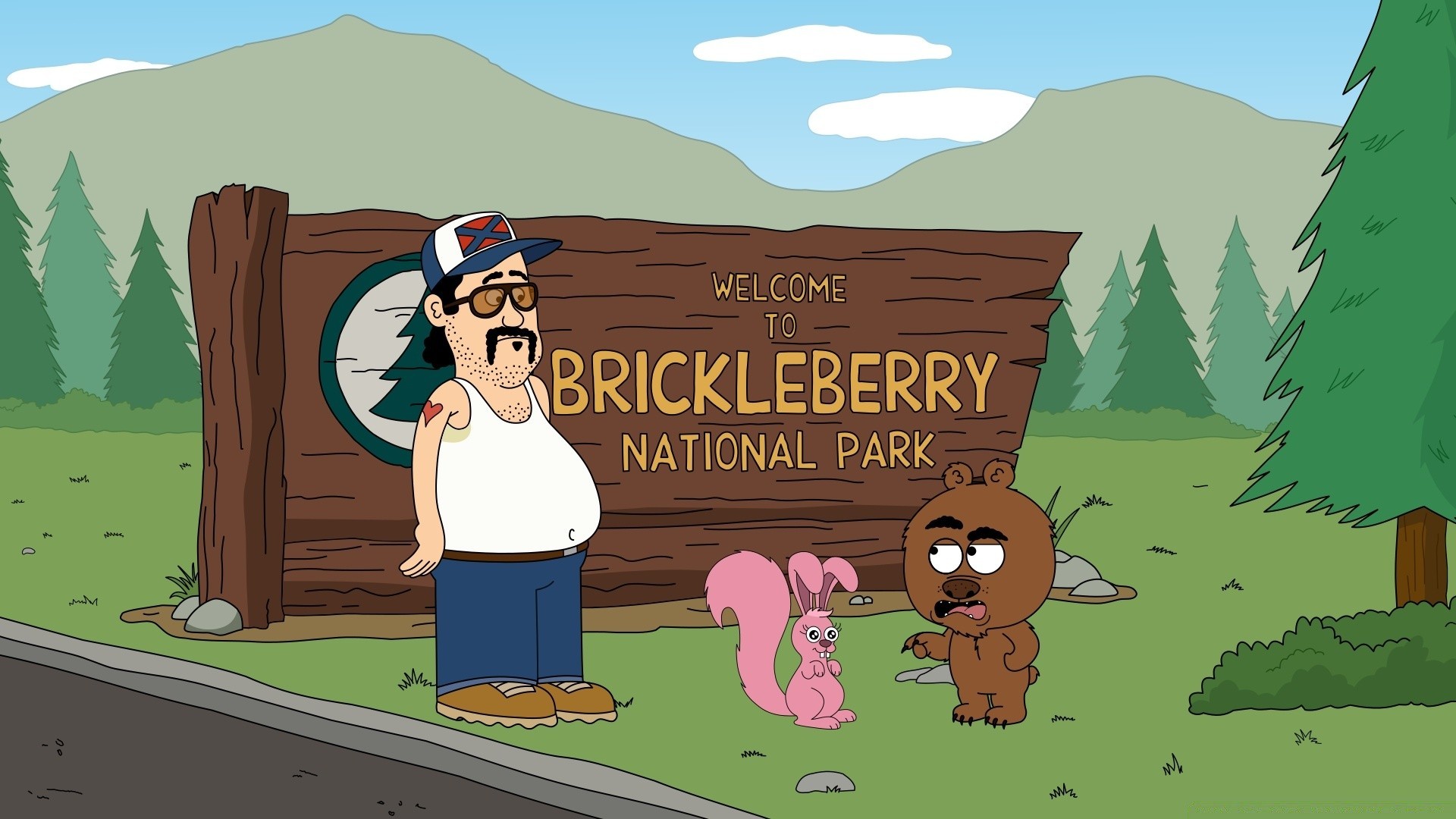 Ein Bär hängt an einer Hündin über einem Igel