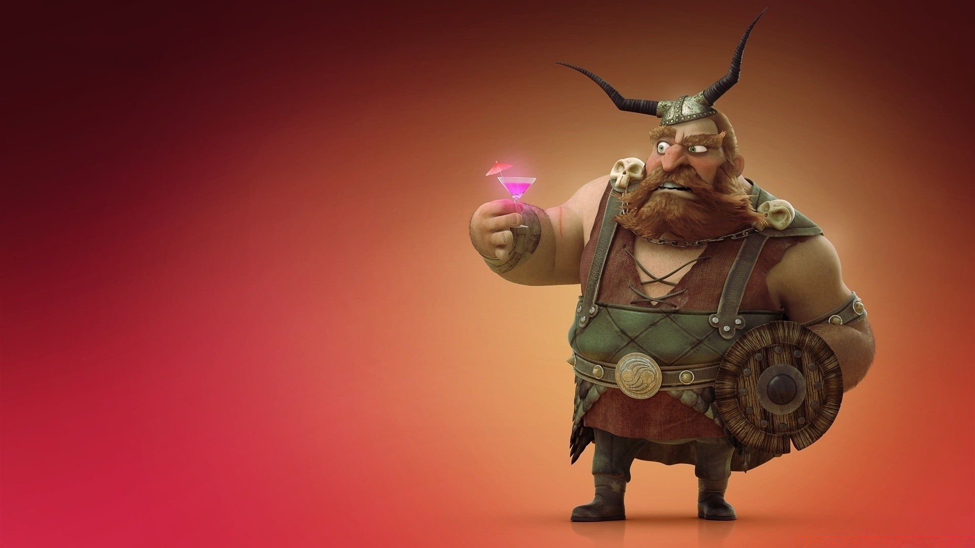 Der animierte Wikinger schaut auf einen Cocktail