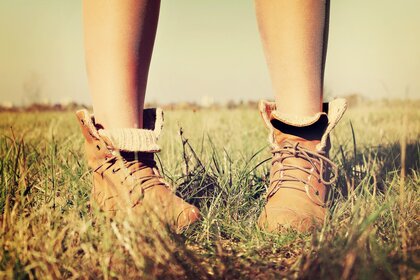 Rote turnschuhe mit weißen schnürsenkeln am himmelshintergrundRote Turnschuhe mit weißen Schnürsenkeln am Himmelshintergrund