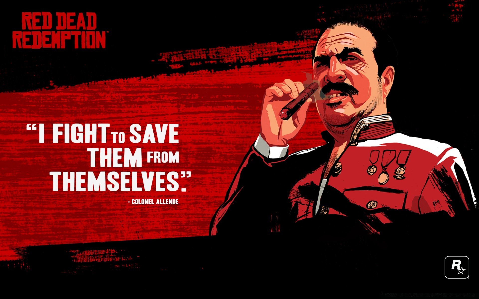 Ein schnurrbärtiger Mann mit einer Zigarre und einem roten Leibchen