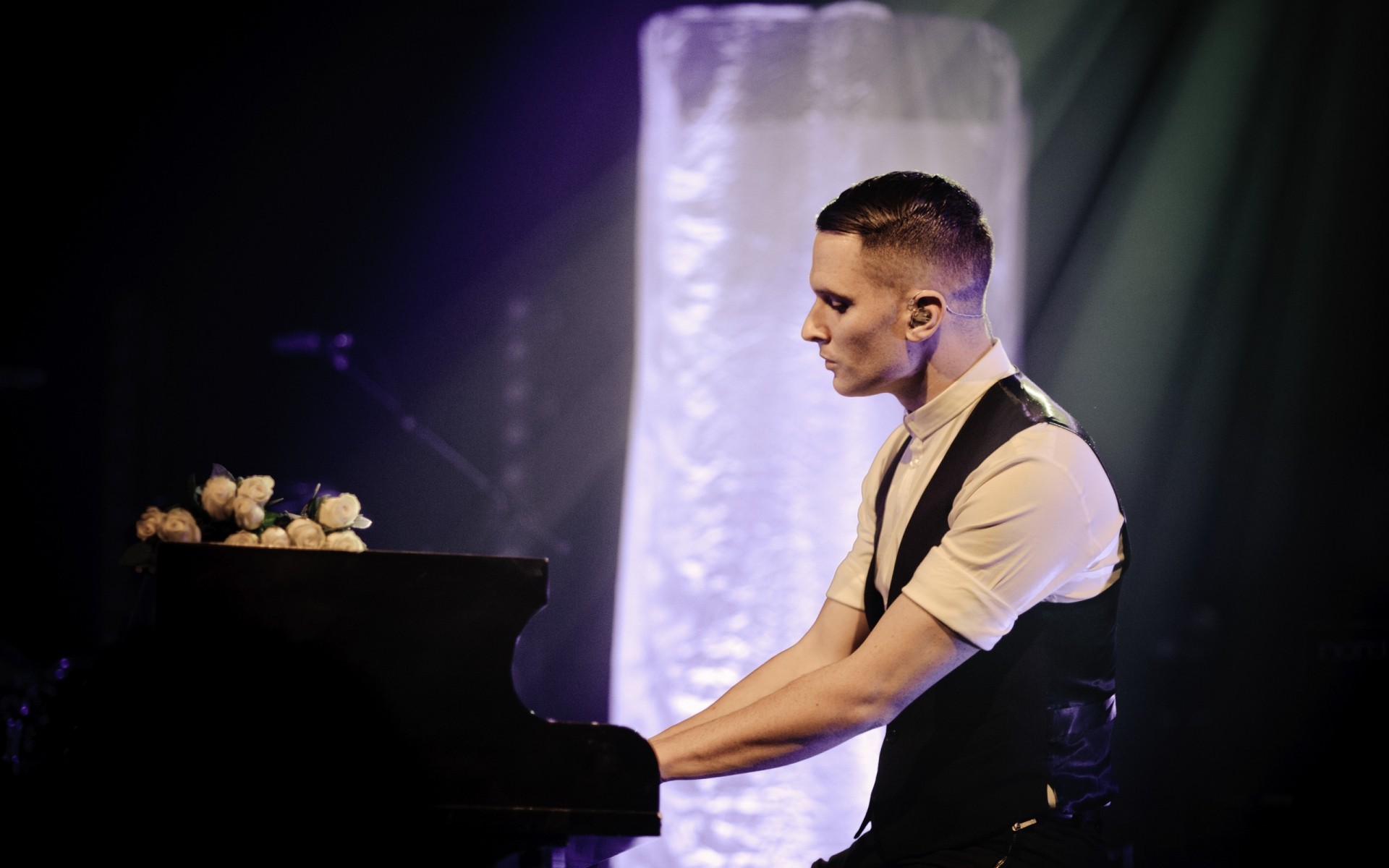 Ein Mann sitzt ausdrucksstark hinter einem Musikinstrument