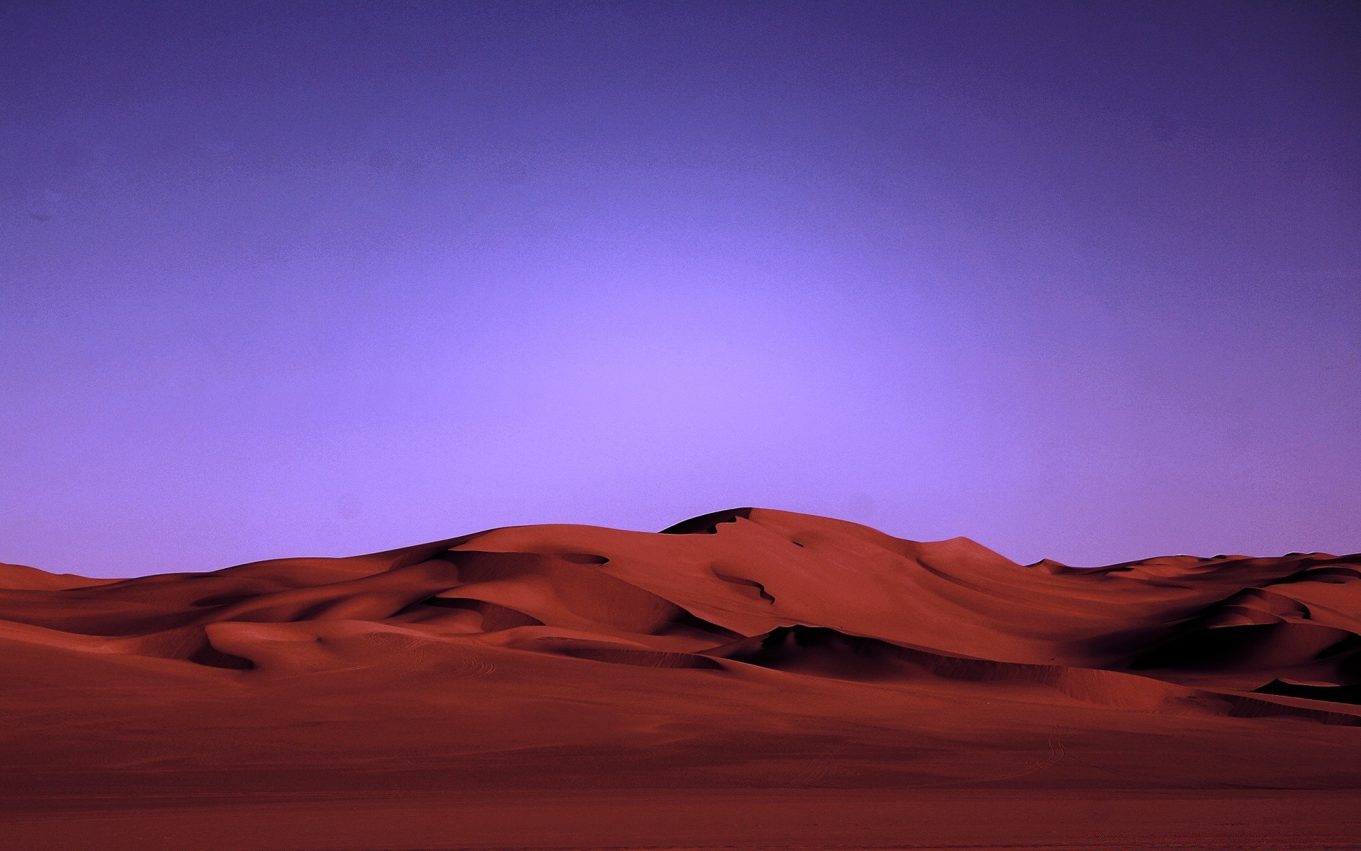 Wüste Landschaft bei Sonnenuntergang. Dünen in den letzten Sonnenstrahlen