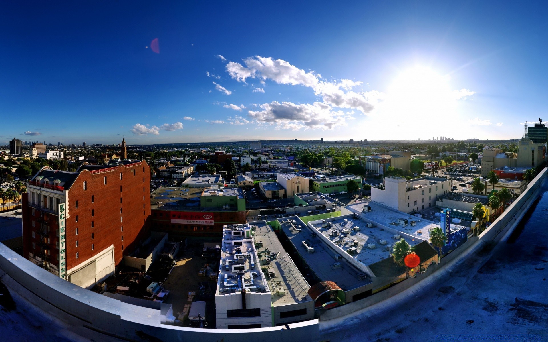 Ein Wolkenkratzer mit glatten Linien und ein Gebäude mit einem nicht standardmäßigen Dach