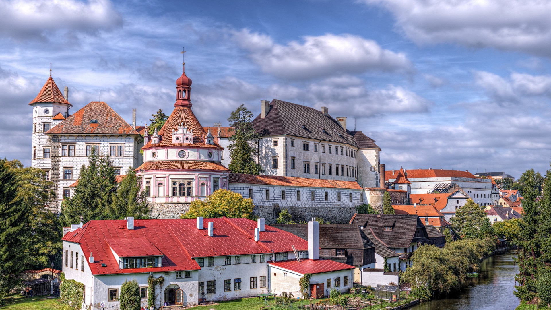 Majestätische Burg vor dem Hintergrund des bewölkten Himmels