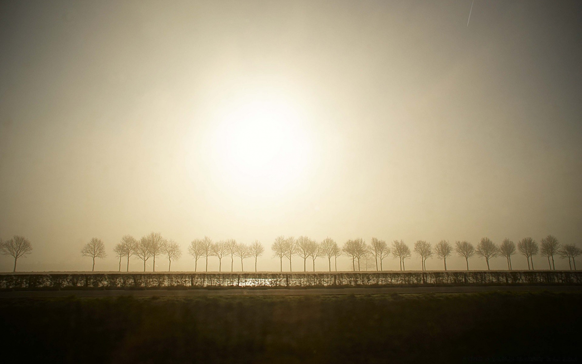 Schöne Dämmerung in der Nähe von Wasser und Bergen