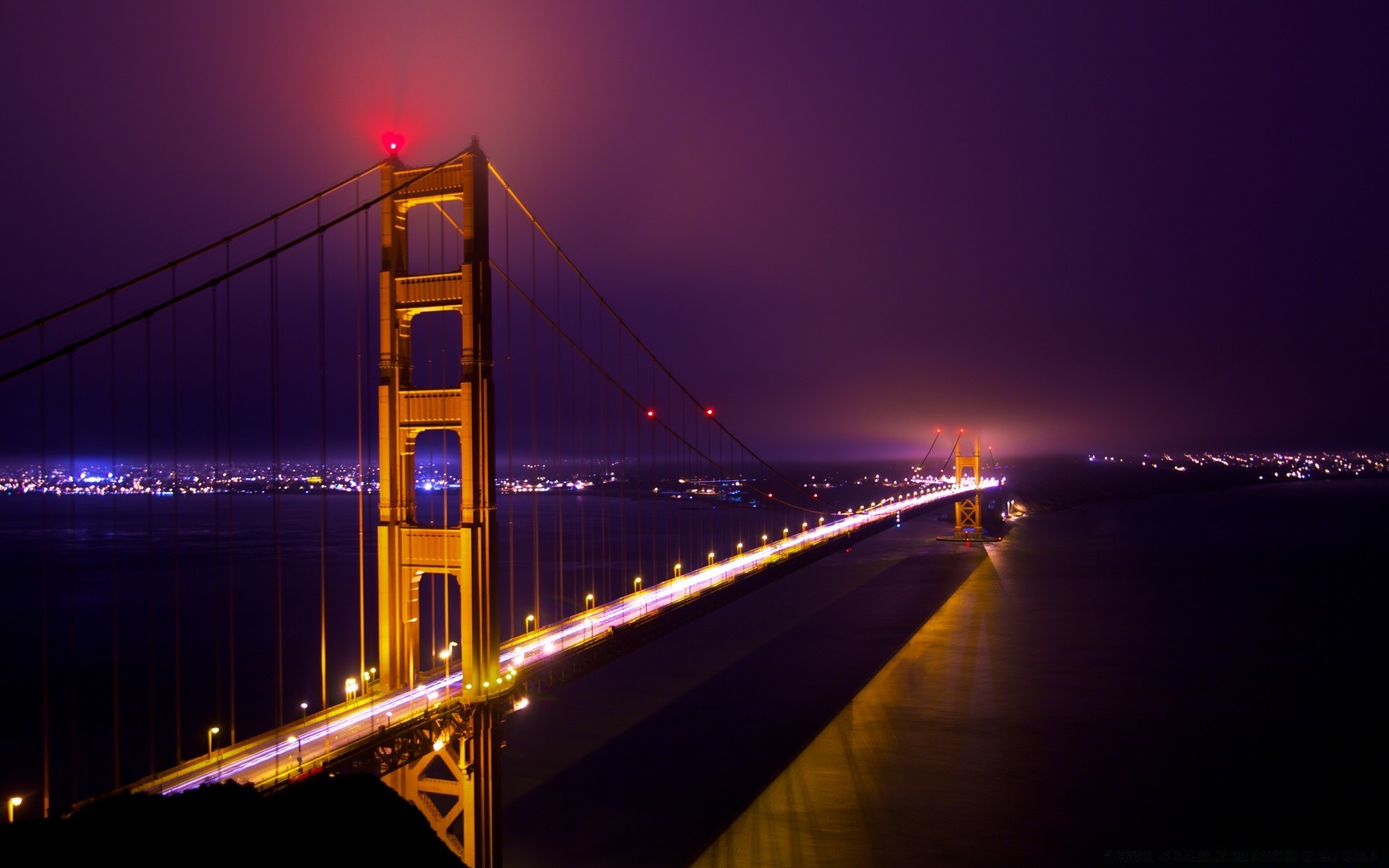 Ein leuchtender Turm in der Nacht inmitten von Wolkenkratzern