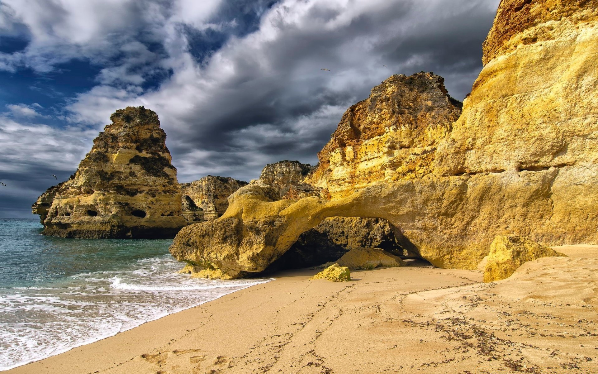 Bezaubernder Strand vor dem Hintergrund der Bucht