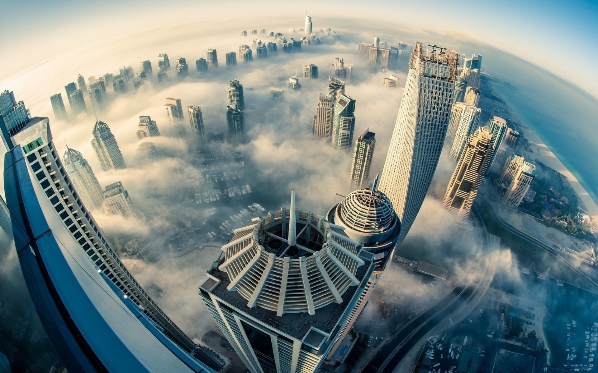Die Stadt der hohen Wolkenkratzer in den Wolken