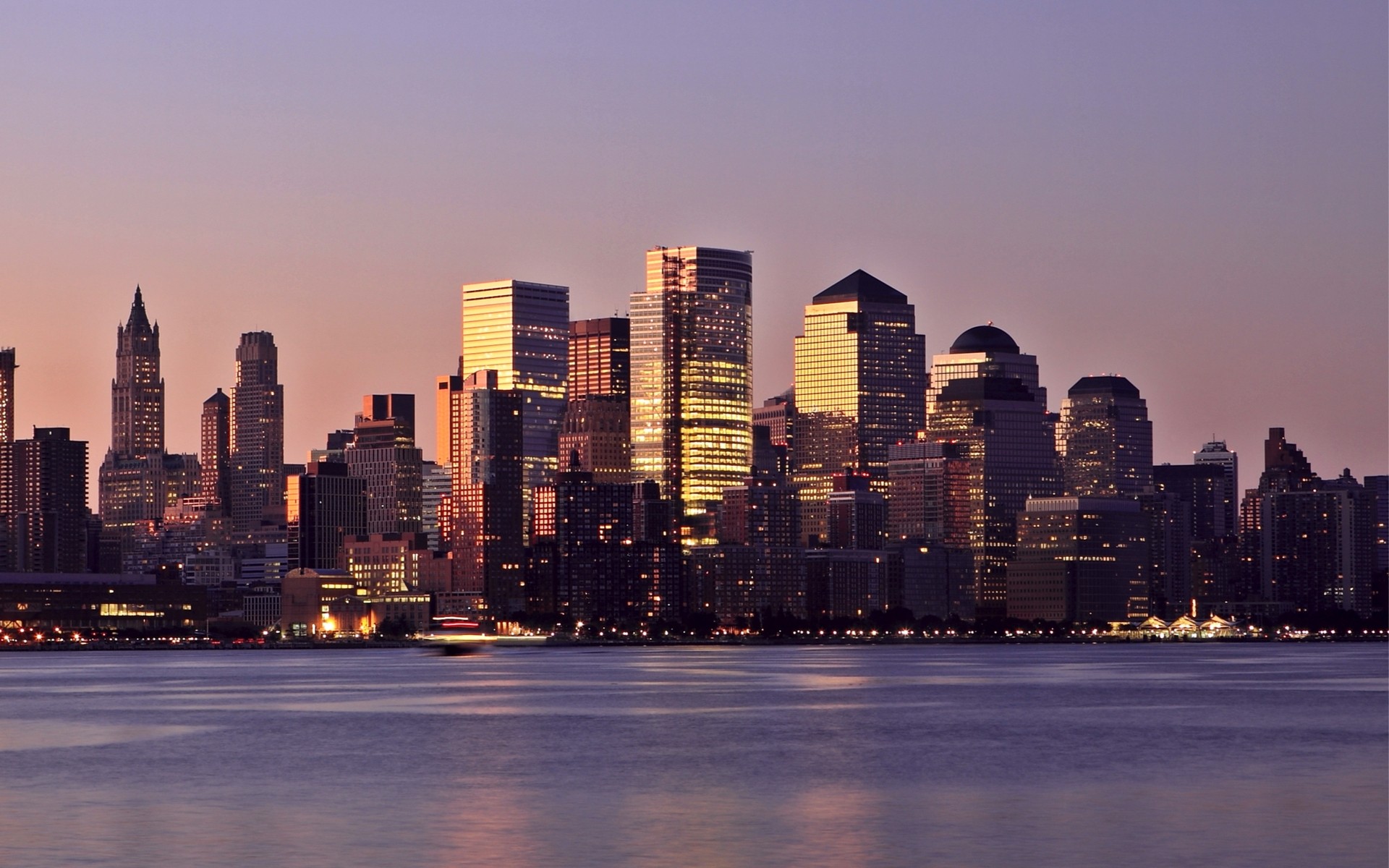 Wolkenkratzer am Wasser der Innenstadt der USA
