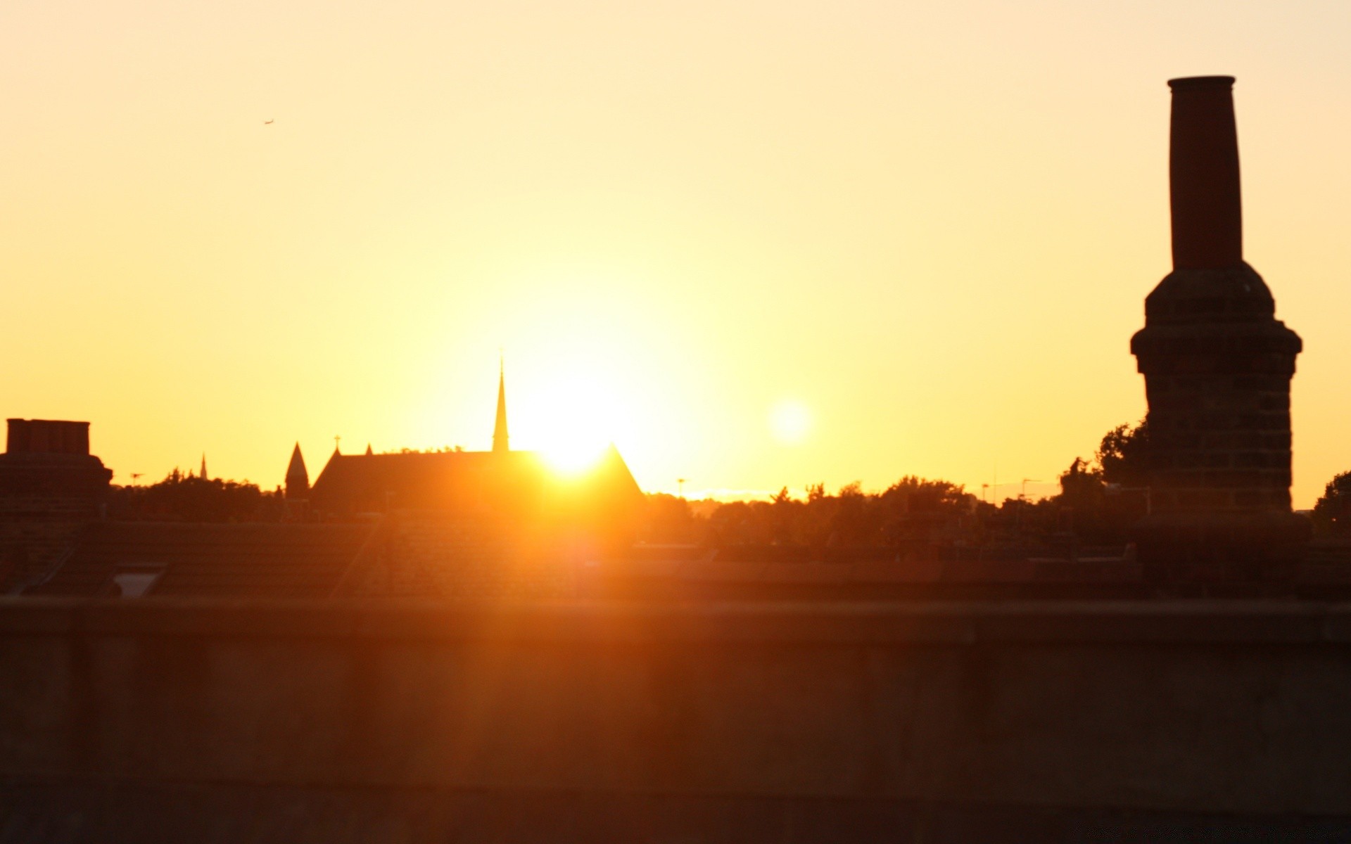 Sonnenuntergang über der stadt von der sonne beleuchtetSonnenuntergang über der Stadt von der Sonne beleuchtet