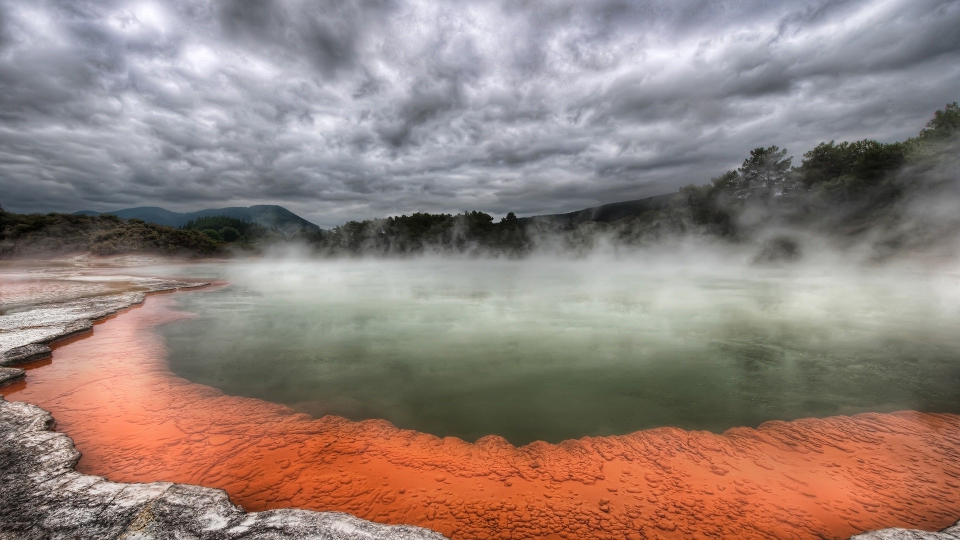 Nebel über der Wasseroberfläche. Von Wolken verschlungener Himmel