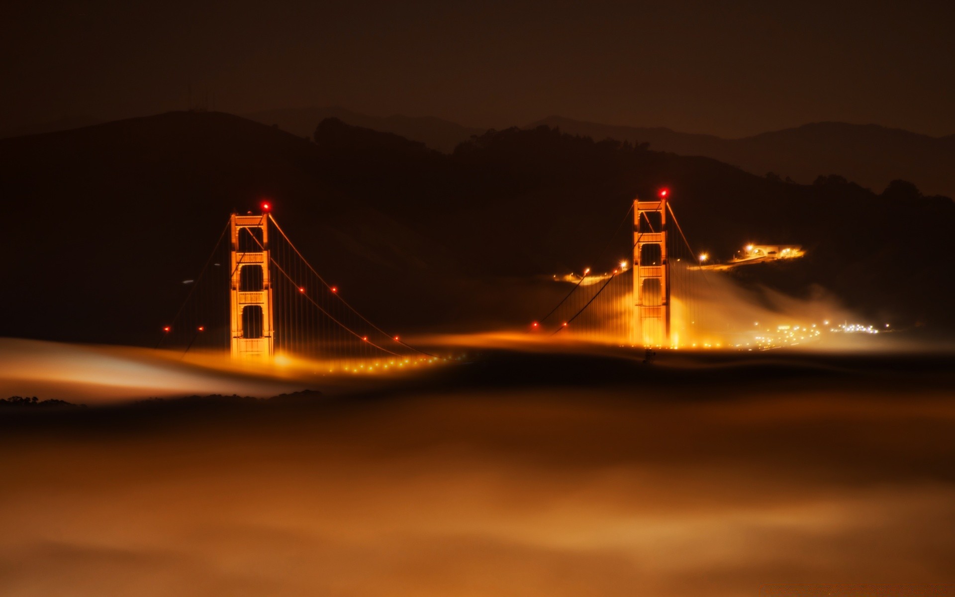 Eine kleine asiatische Stadt in der Nähe der Berge wird von Nachtlichtern beleuchtet