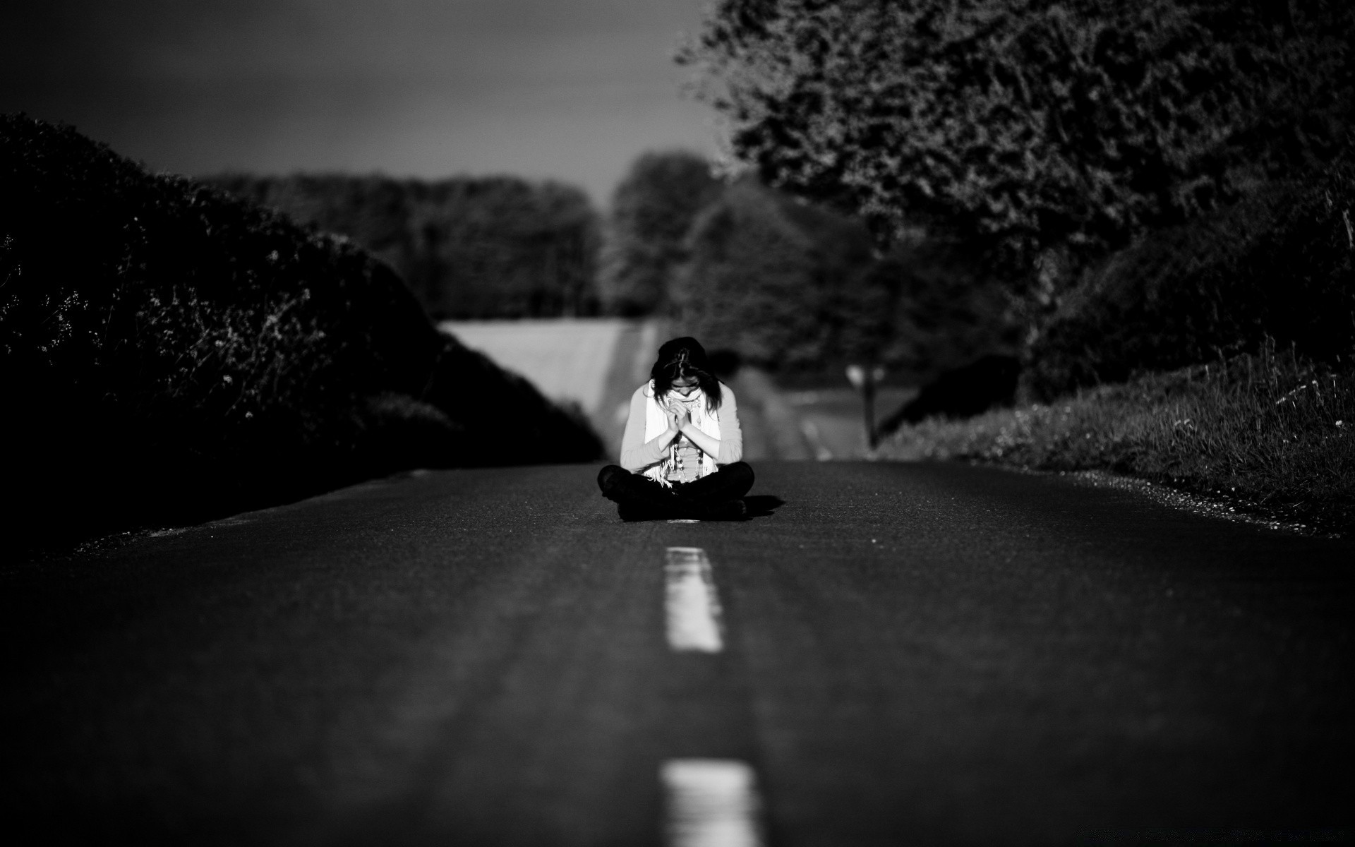 Die meditation eines mannes in der mitte der straßeDie Meditation eines Mannes in der Mitte der Straße