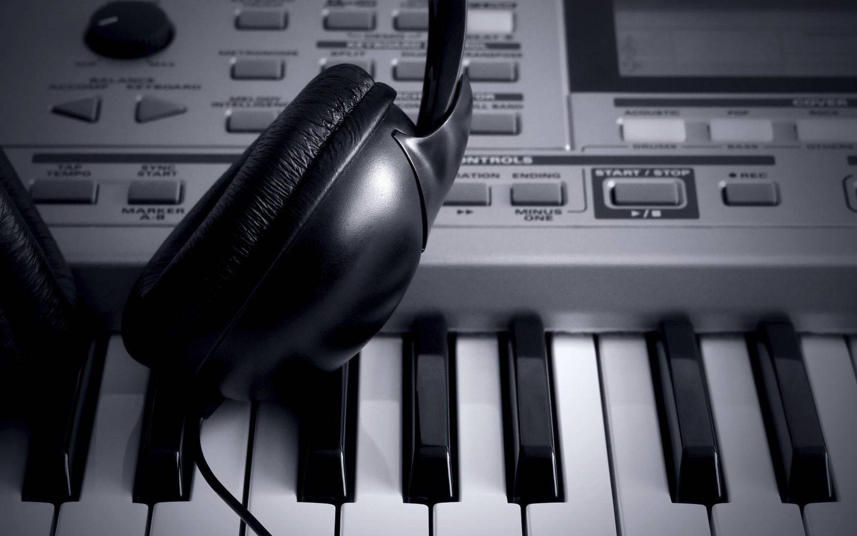 Die Kopfhörer liegen auf der Synthesizer-Tastatur