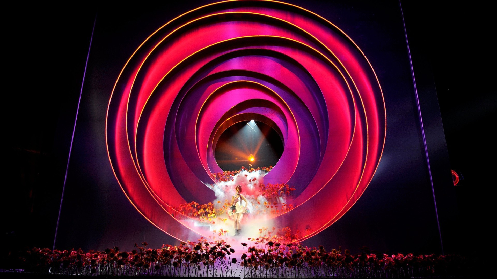 Eine Menge Leute, die bei einem Konzert zur Musik tanzen