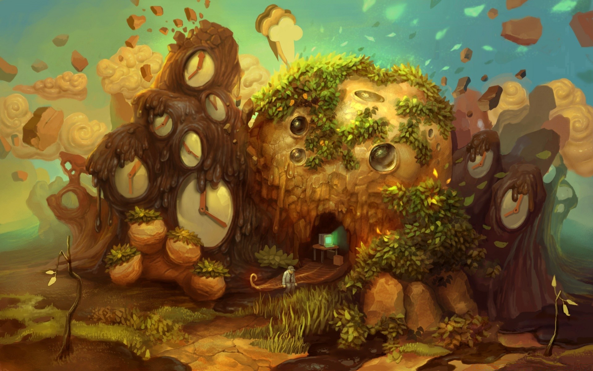 Fantastische Illustration mit Uhr und Grün