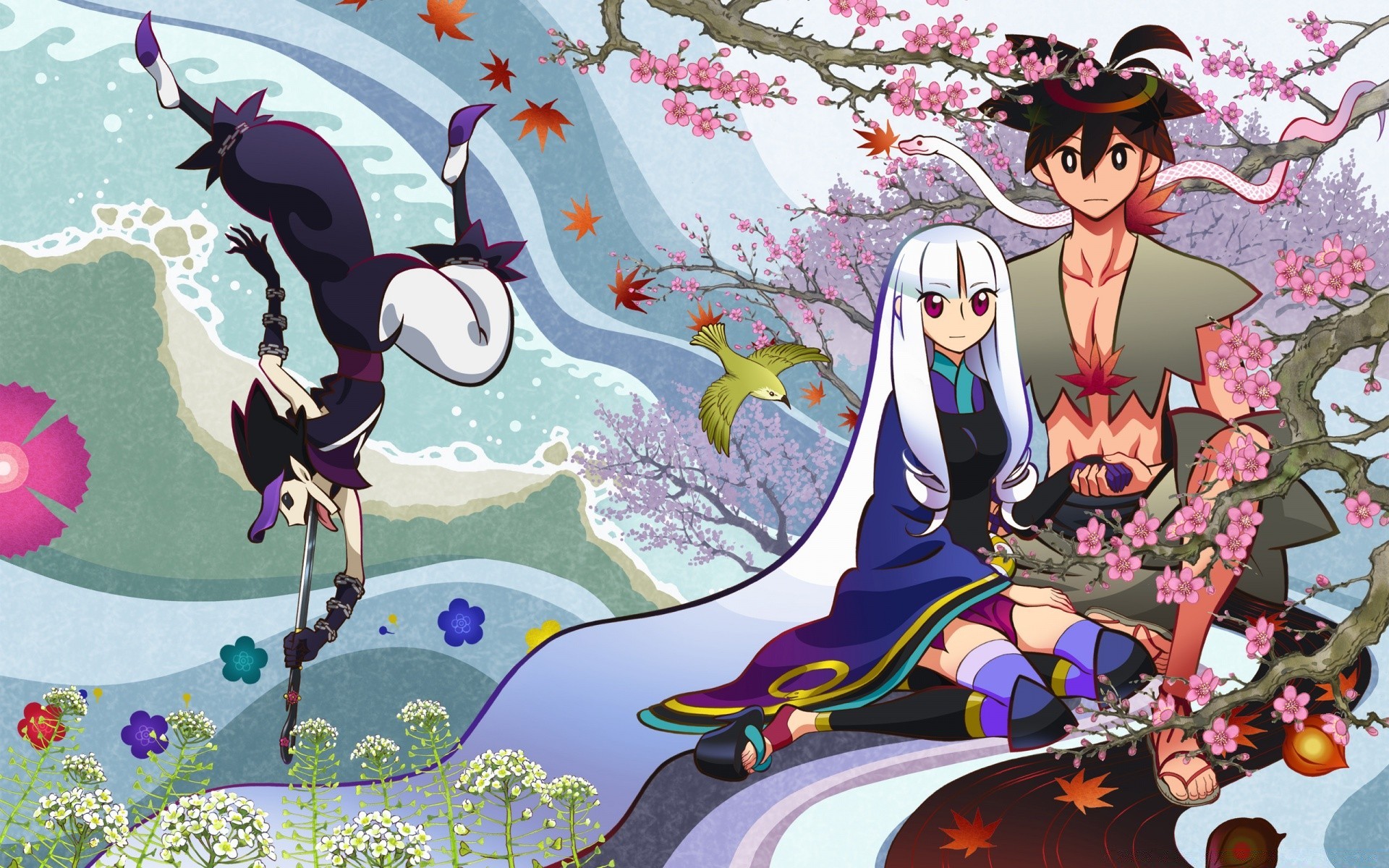 Anime Tiere auf Stein Desktop-Illustration