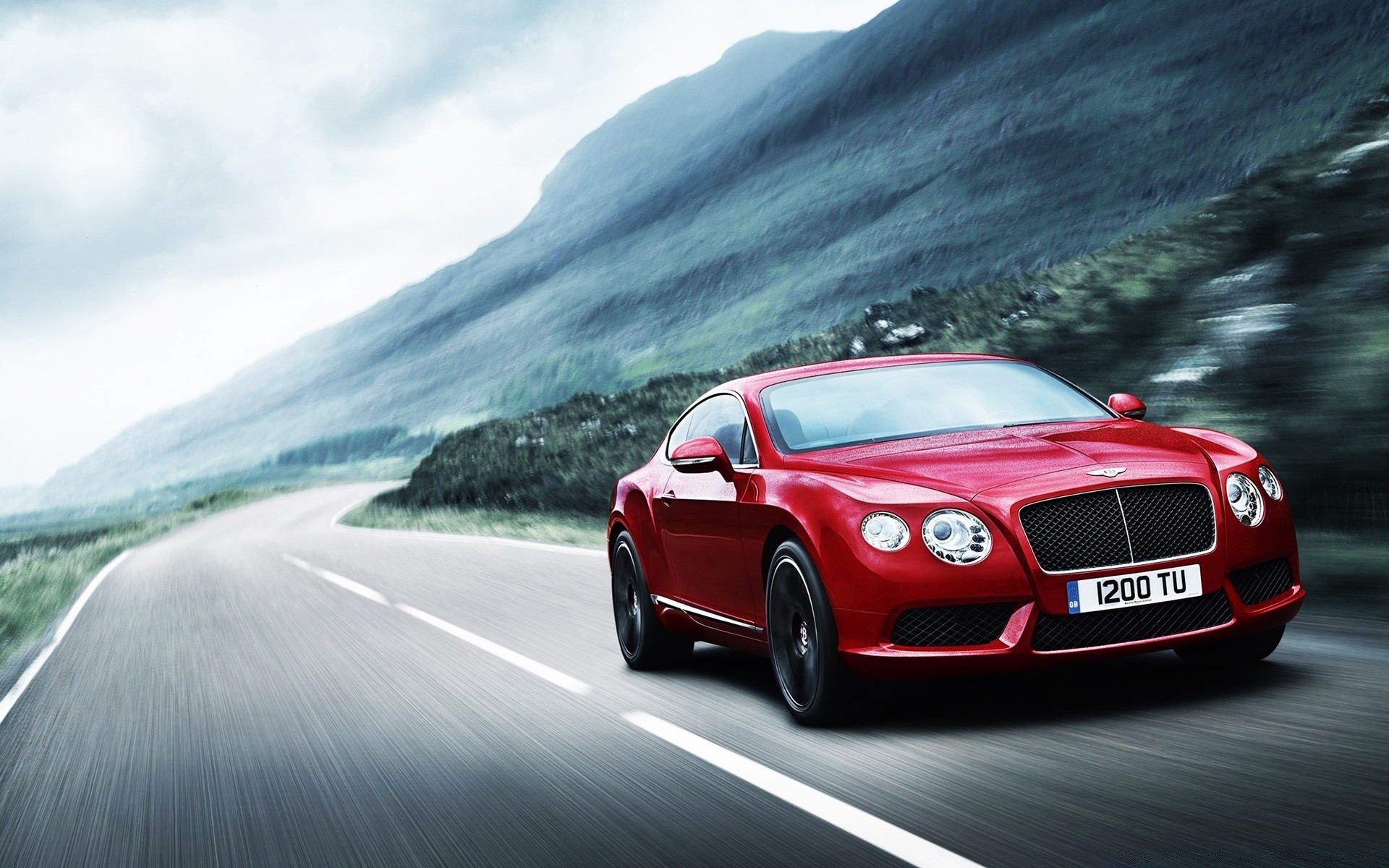 Bilder von Bentley Sportwagen auf dem Hintergrund der Straße und der Berge