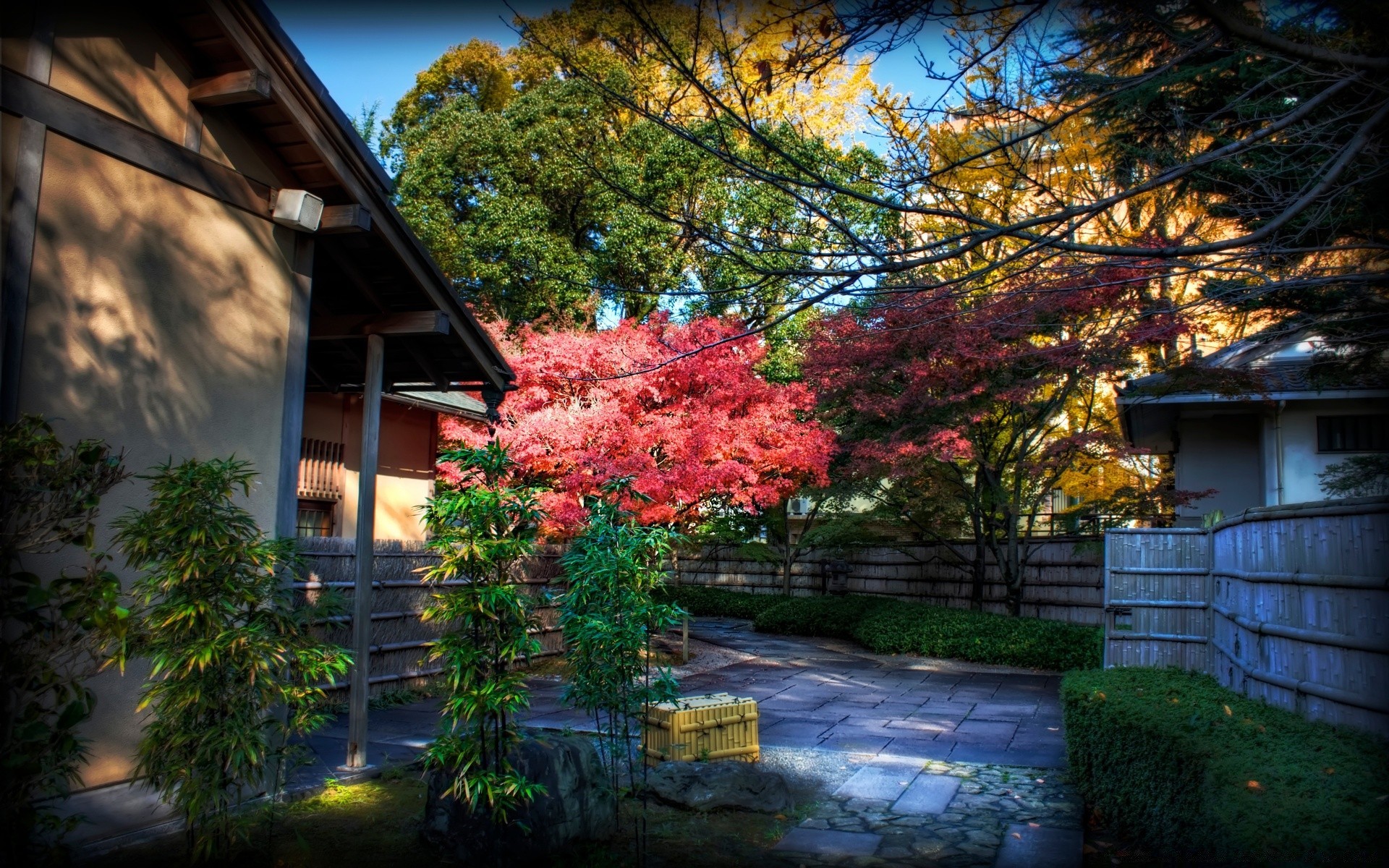 Der Turm mit den Häusern am Teich und dem Grün rundherum