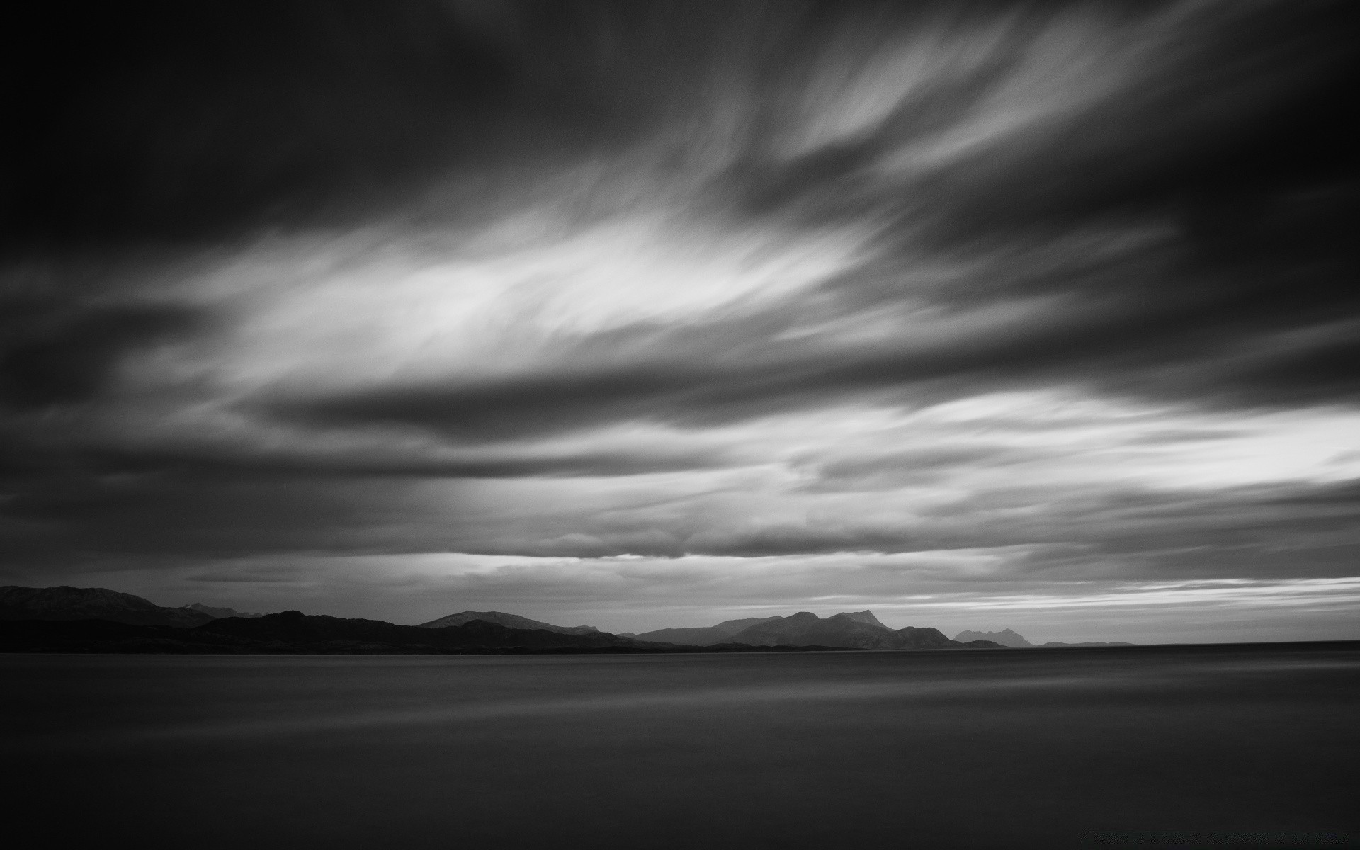 Schwarz-Weiß-Foto des Sonnenuntergangs am Abend