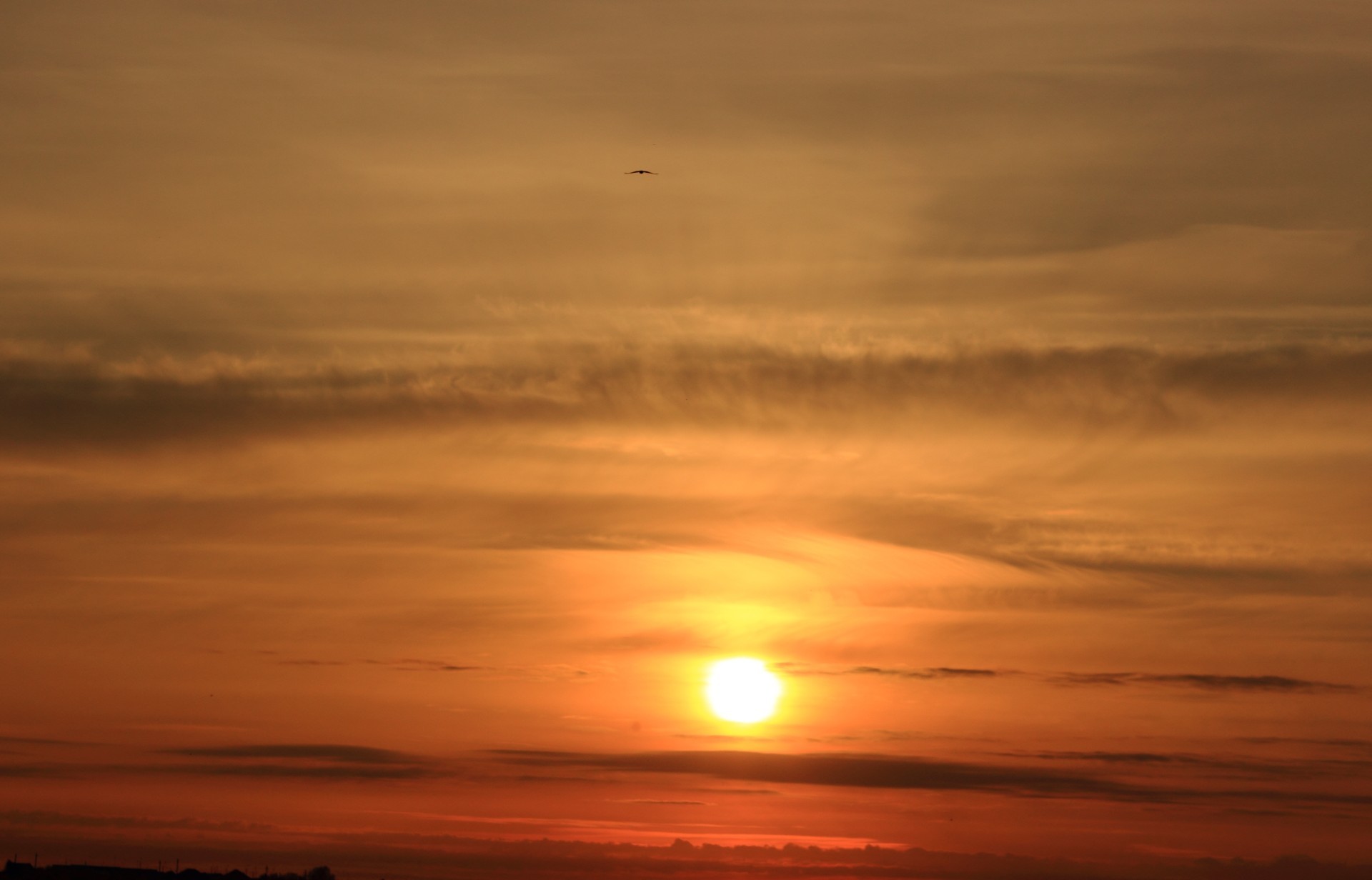 Auf wolken und fliegende möwe bei sonnenuntergang