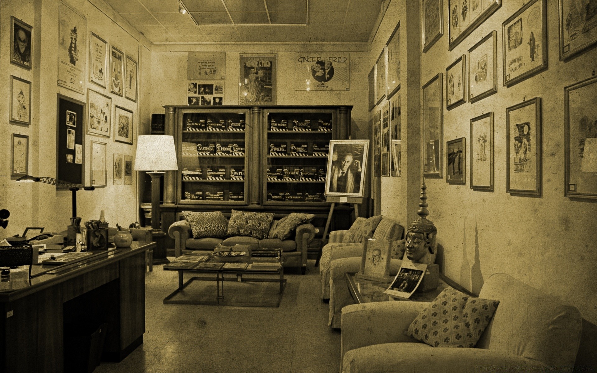 Schönes Vintage-Zimmer mit gelbem Licht