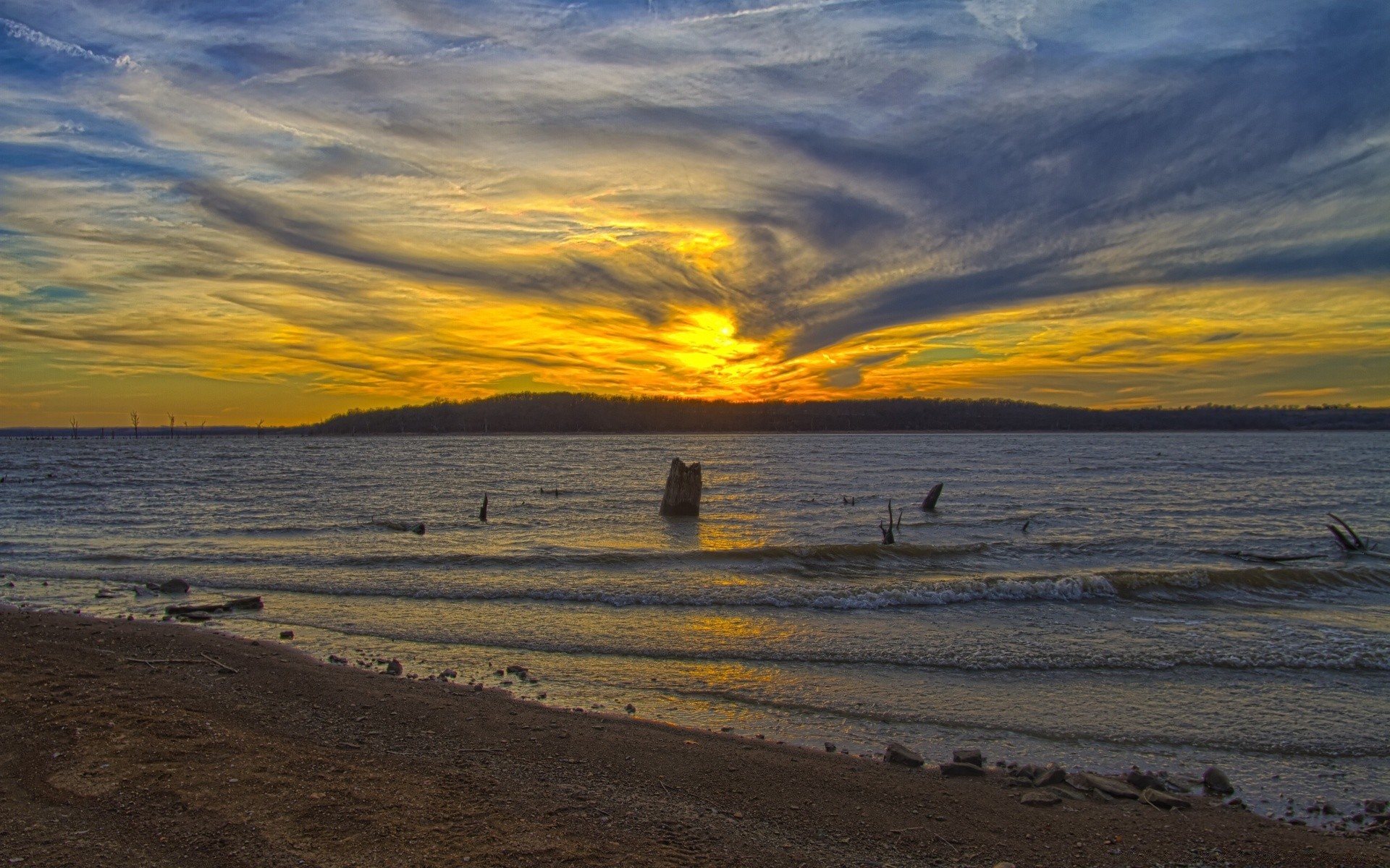 Sonnenuntergang Himmel mit Wolken über dem Wasser