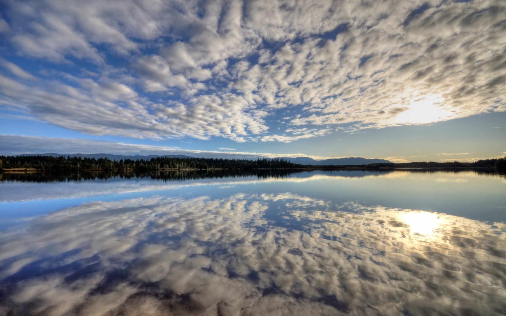 Abend Sonnenuntergang. Düsterer Himmel auf dem Wasser