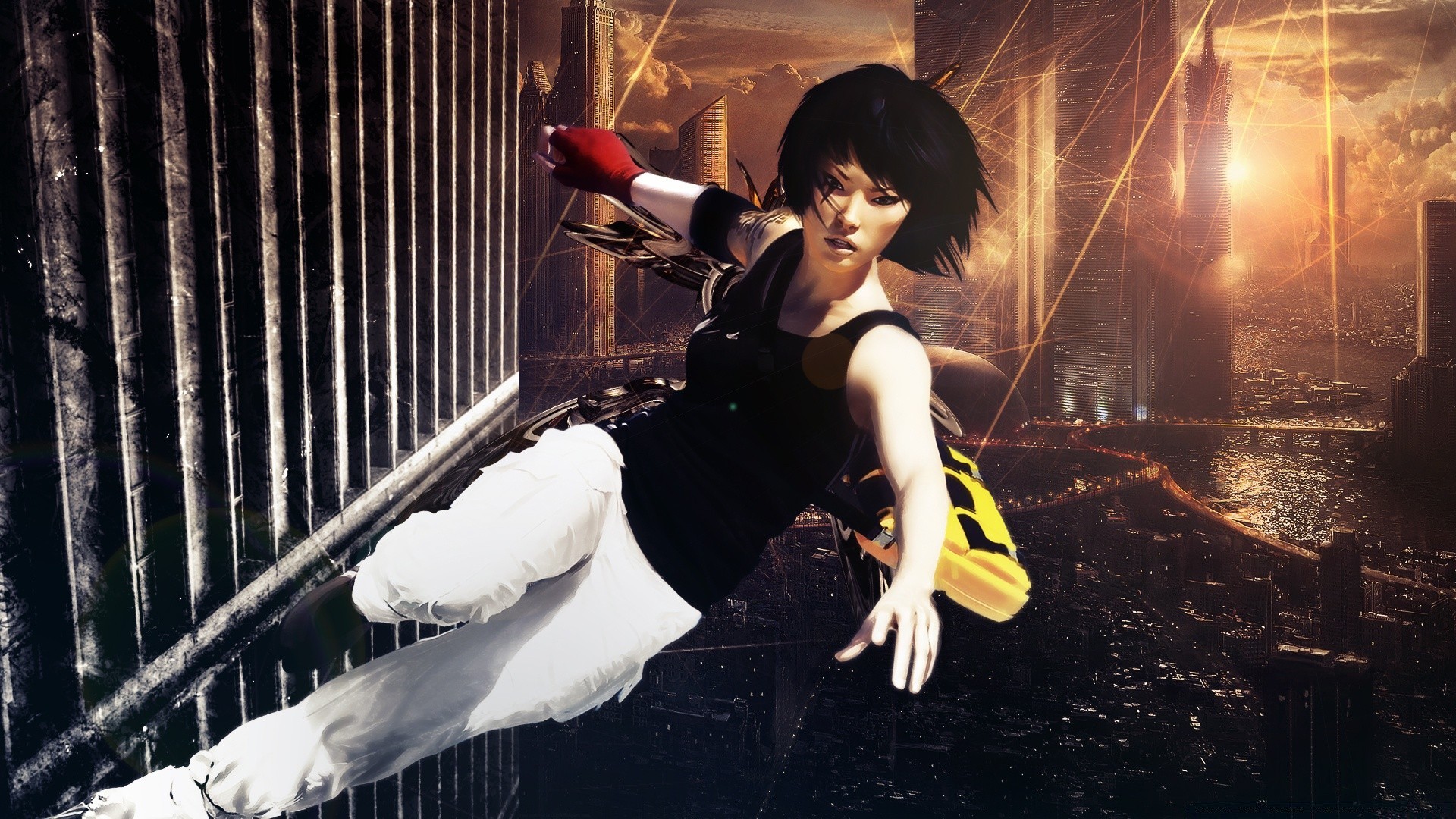 Ein Mädchen in einer weißen Hose läuft gegen eine Wand