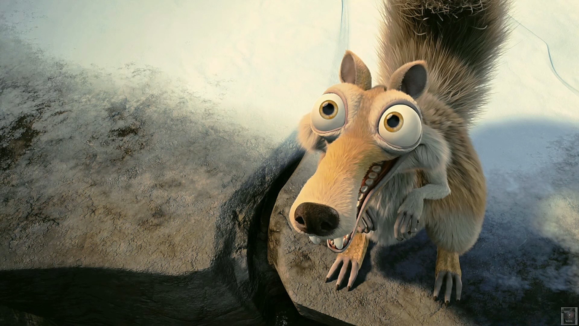 Ein bild aus dem zeichentrickfilm ice age mit einem eichhörnchen auf einer eisscholleEin Bild aus dem Zeichentrickfilm Ice Age mit einem Eichhörnchen auf einer Eisscholle