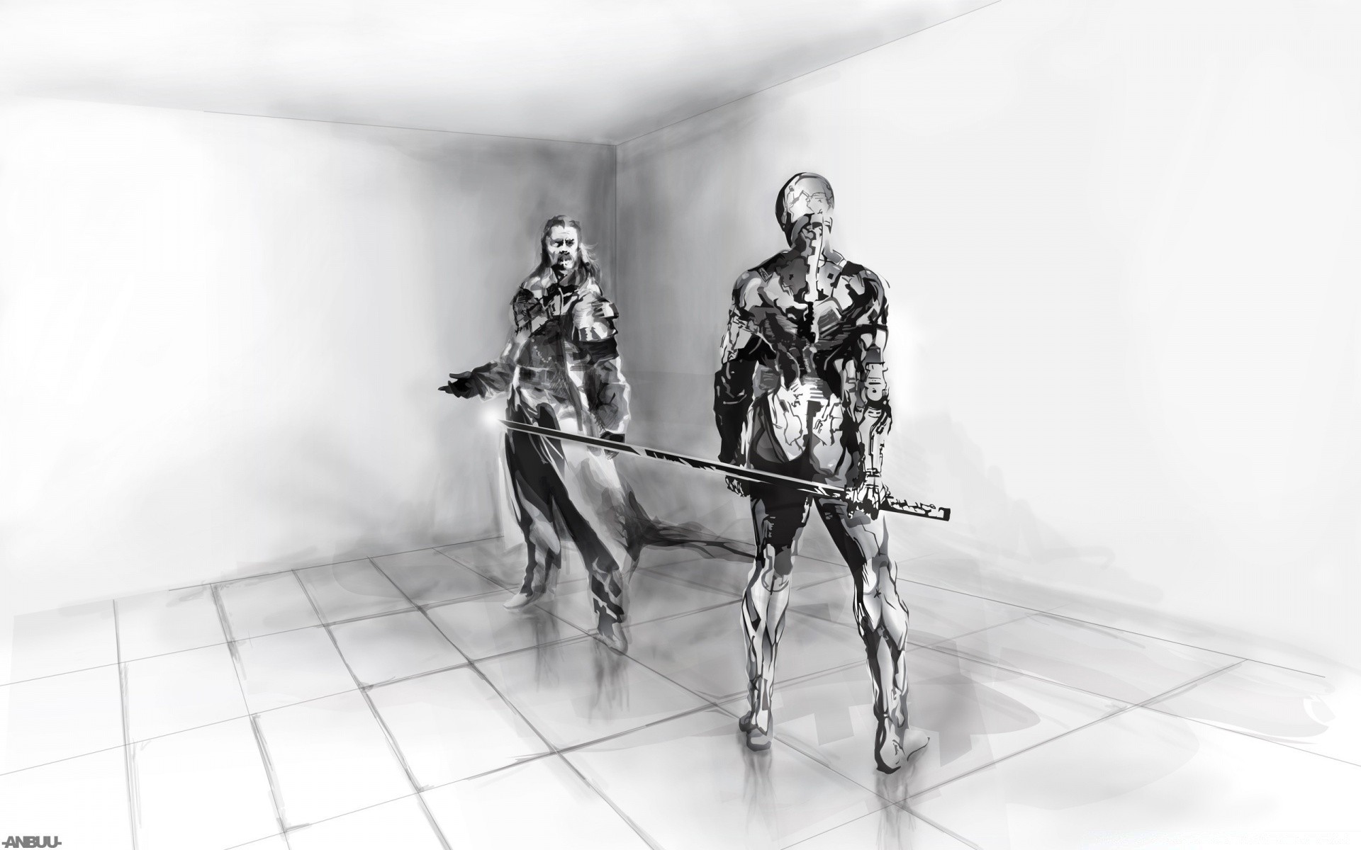 Der Prinz von Persien mit einem Dolch auf einem Rauchhintergrund