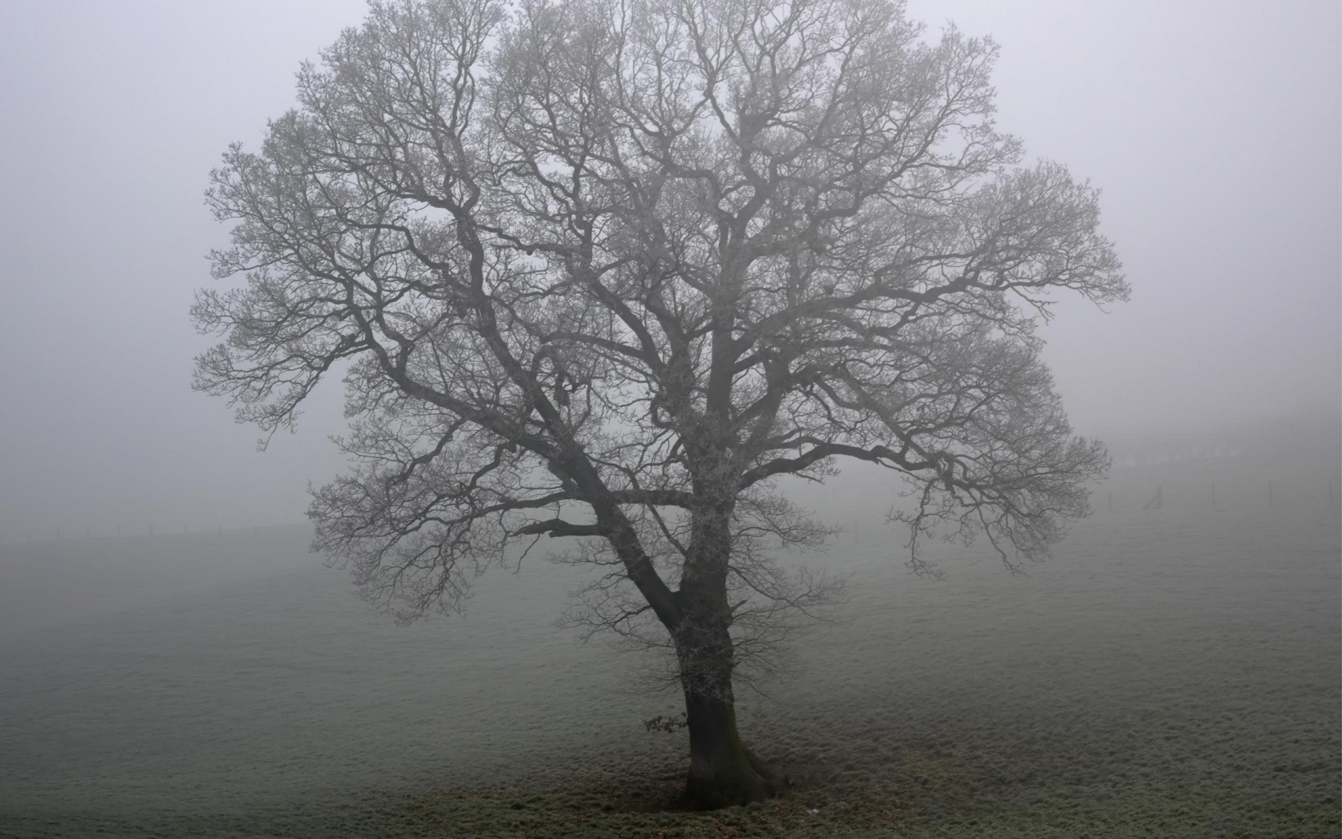 Ein einsamer Baum im Nebel, die klassische Schwarz-Weiß-Variante