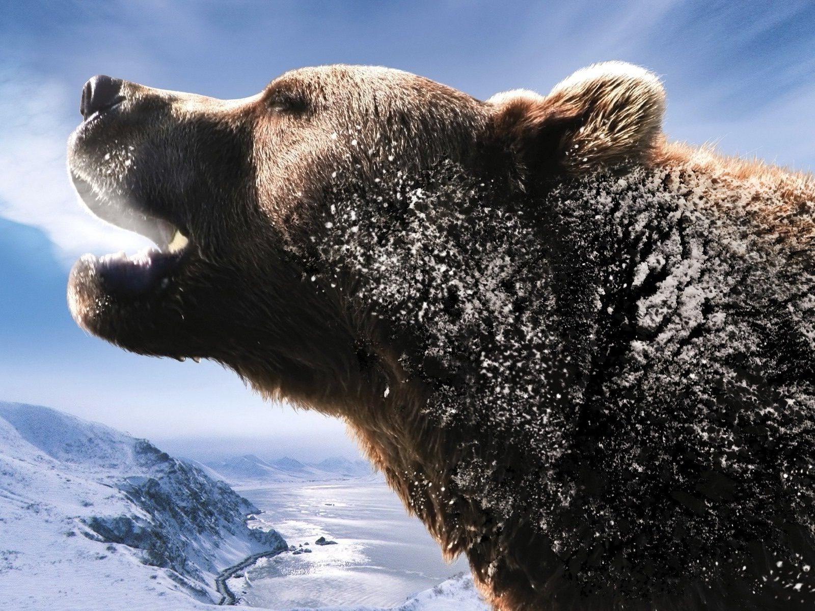 Mann in Tarnung vor dem Hintergrund einer Winterlandschaft