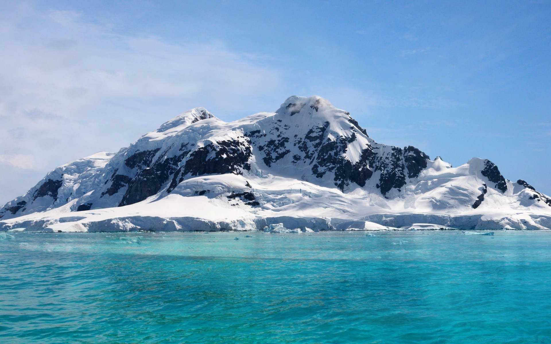 Felsige blaue Berge auf einem blauen Himmelshintergrund