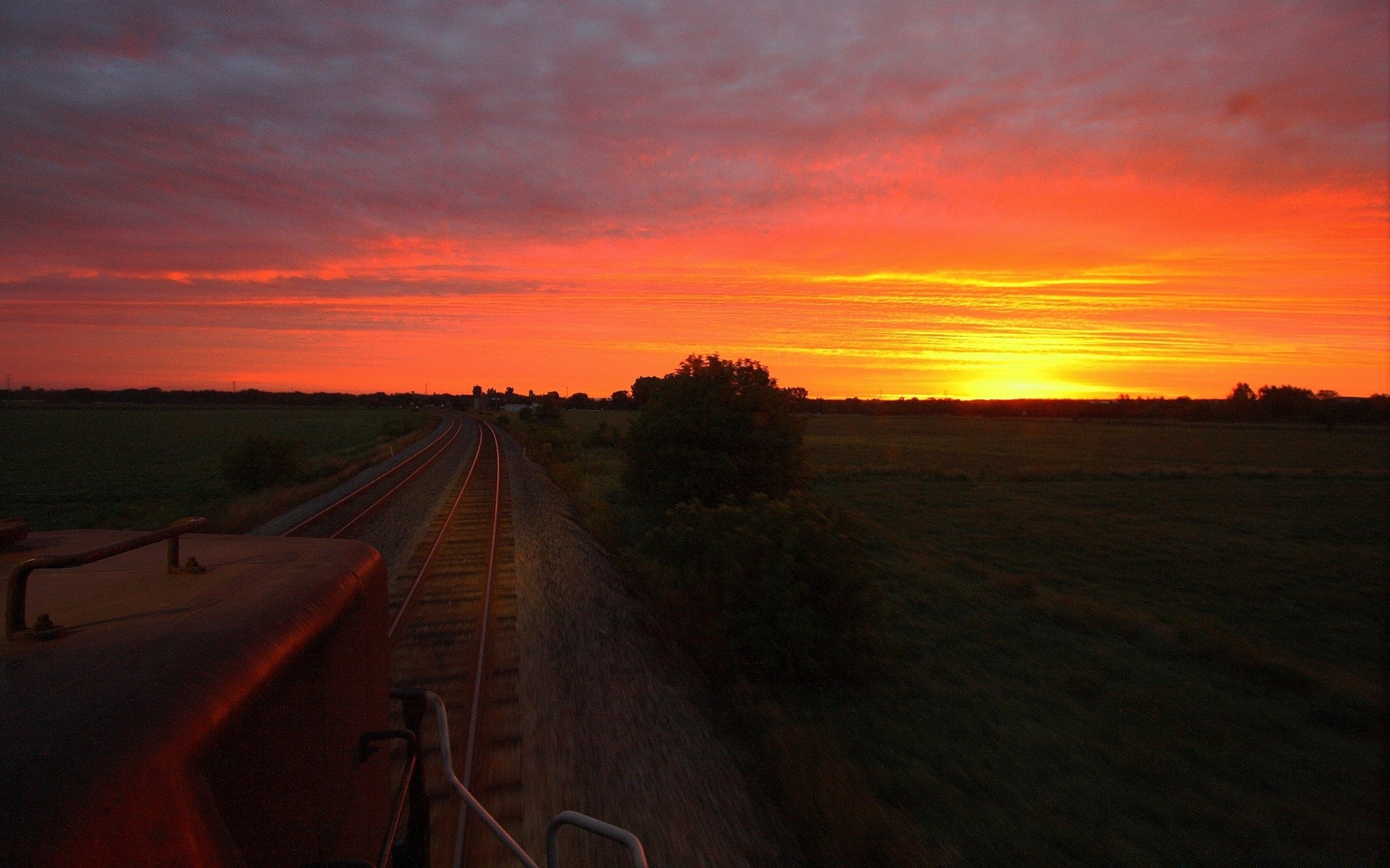 Eisenbahn im Feld bei Sonnenuntergang