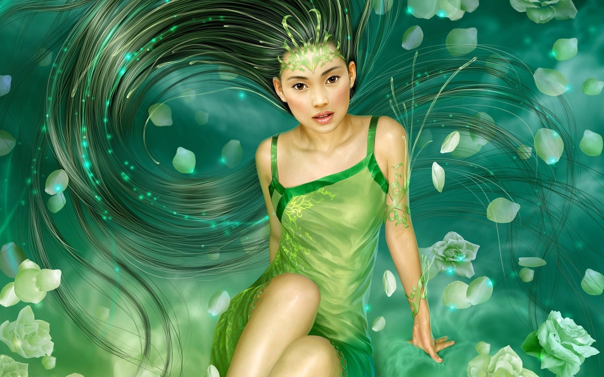 Ein Mädchen im grünen Kleid - als Bild des Frühlings